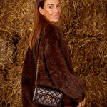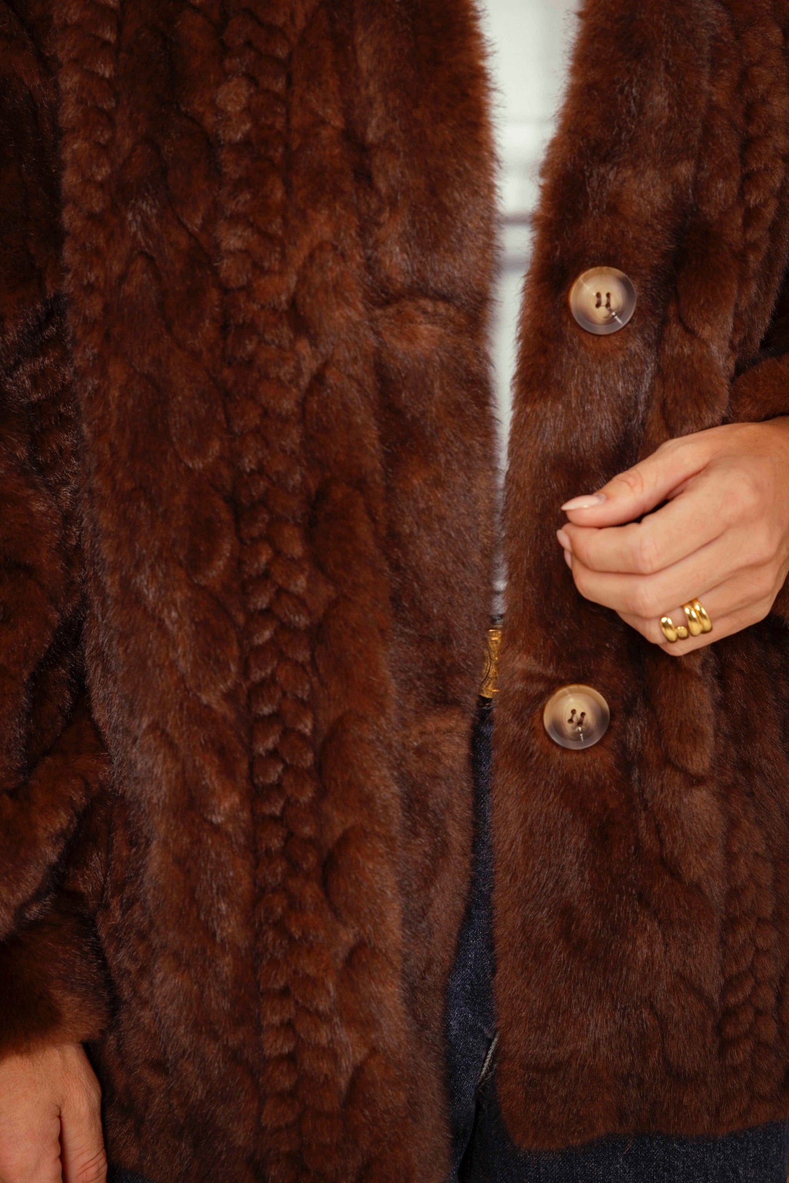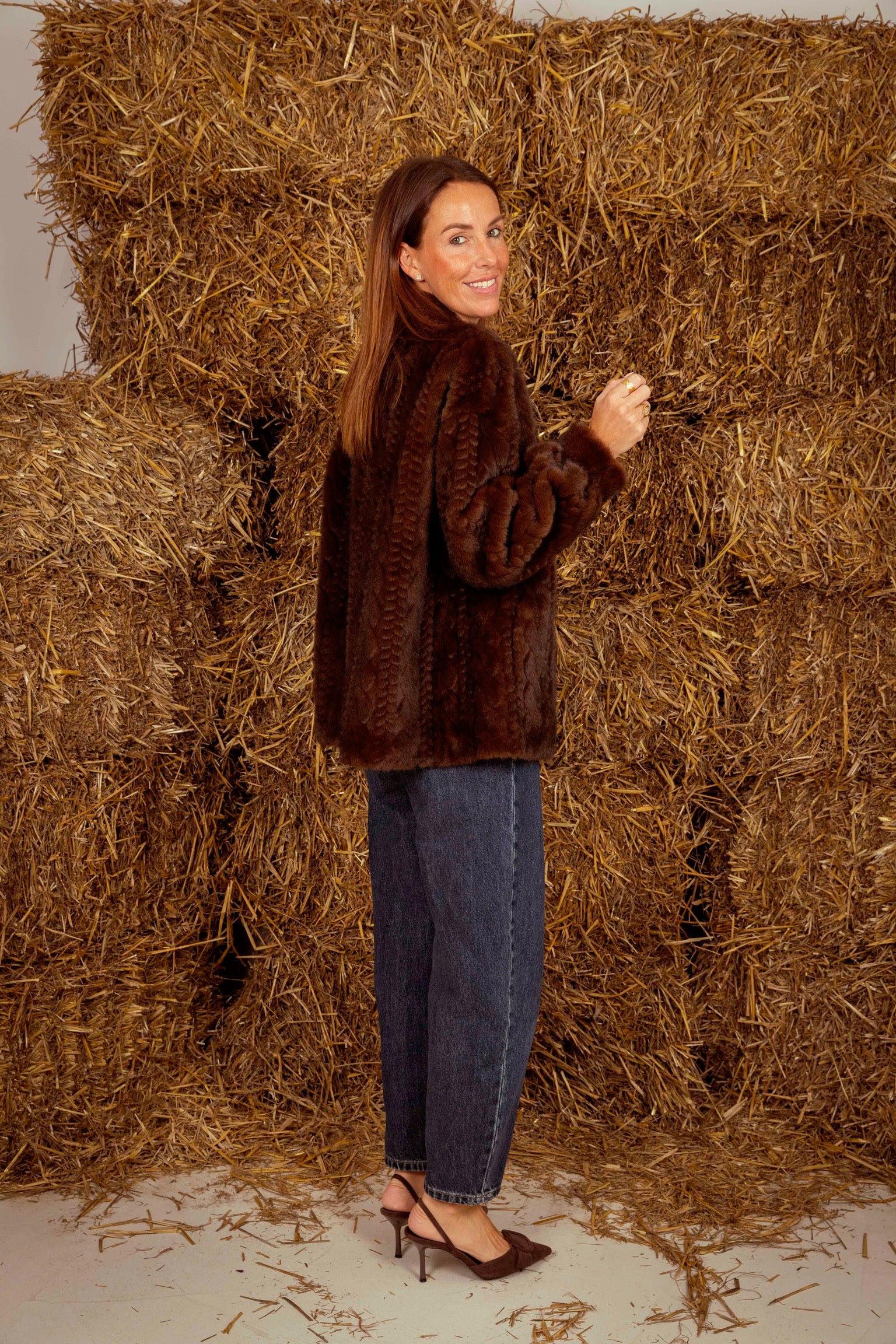 Een zachte, pluizige cardigan in warme bruine tinten, perfect om snel een extra laag warmte toe te voegen. Comfortabel en casual, ideaal voor ontspannen herfstdagen vol knusse momenten.
