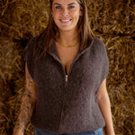 AURIELLE BROWN KNITTED ZIP SWEATER