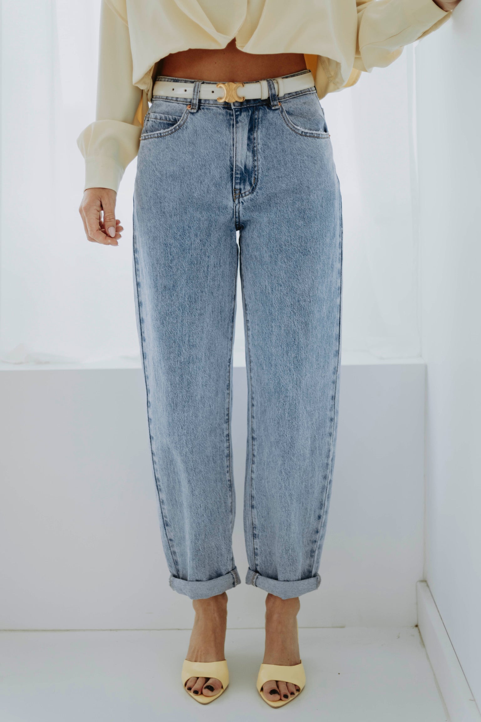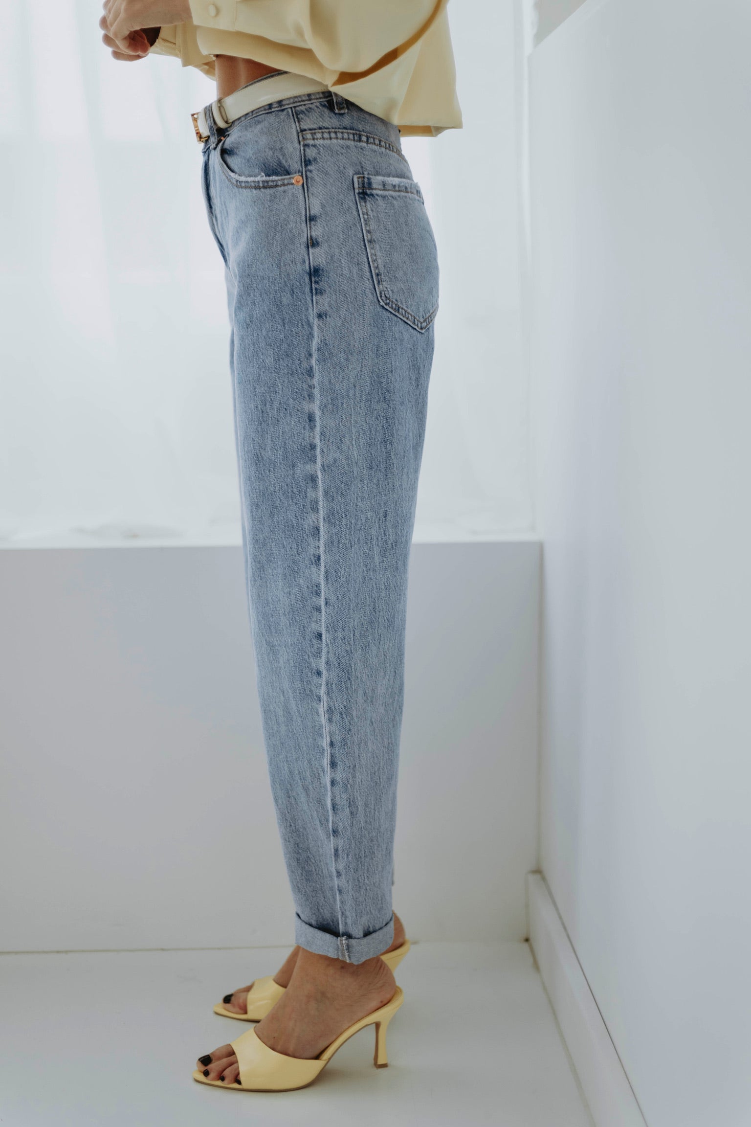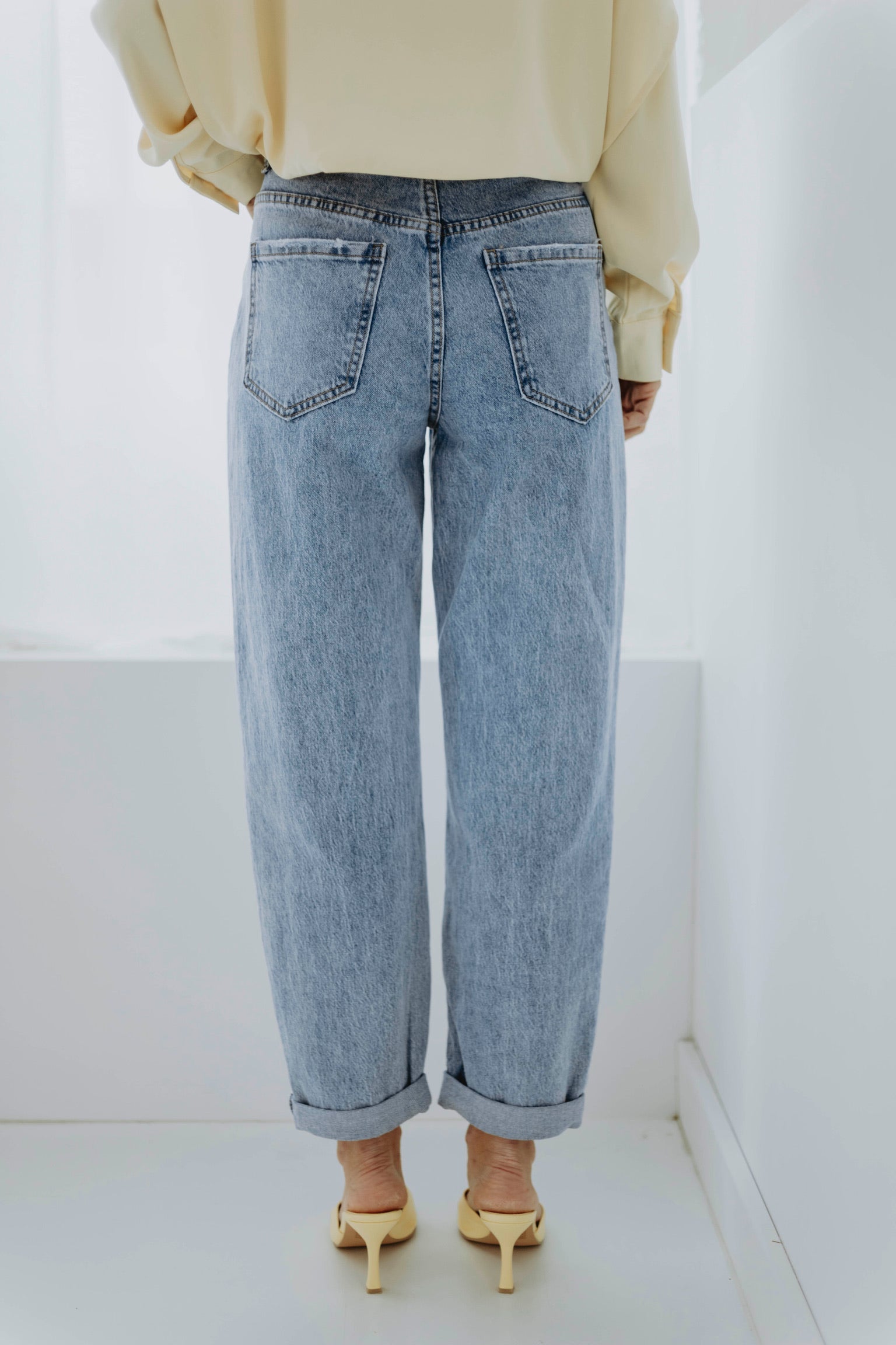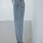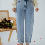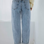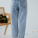 De frisse blauwe wassing geeft een tijdloze en ontspannen uitstraling. Het mom-fit silhouet zit comfortabel en zorgt voor een nonchalante maar stijlvolle look. Perfect om eindeloos te combineren voor een moeiteloze lente-outfit.