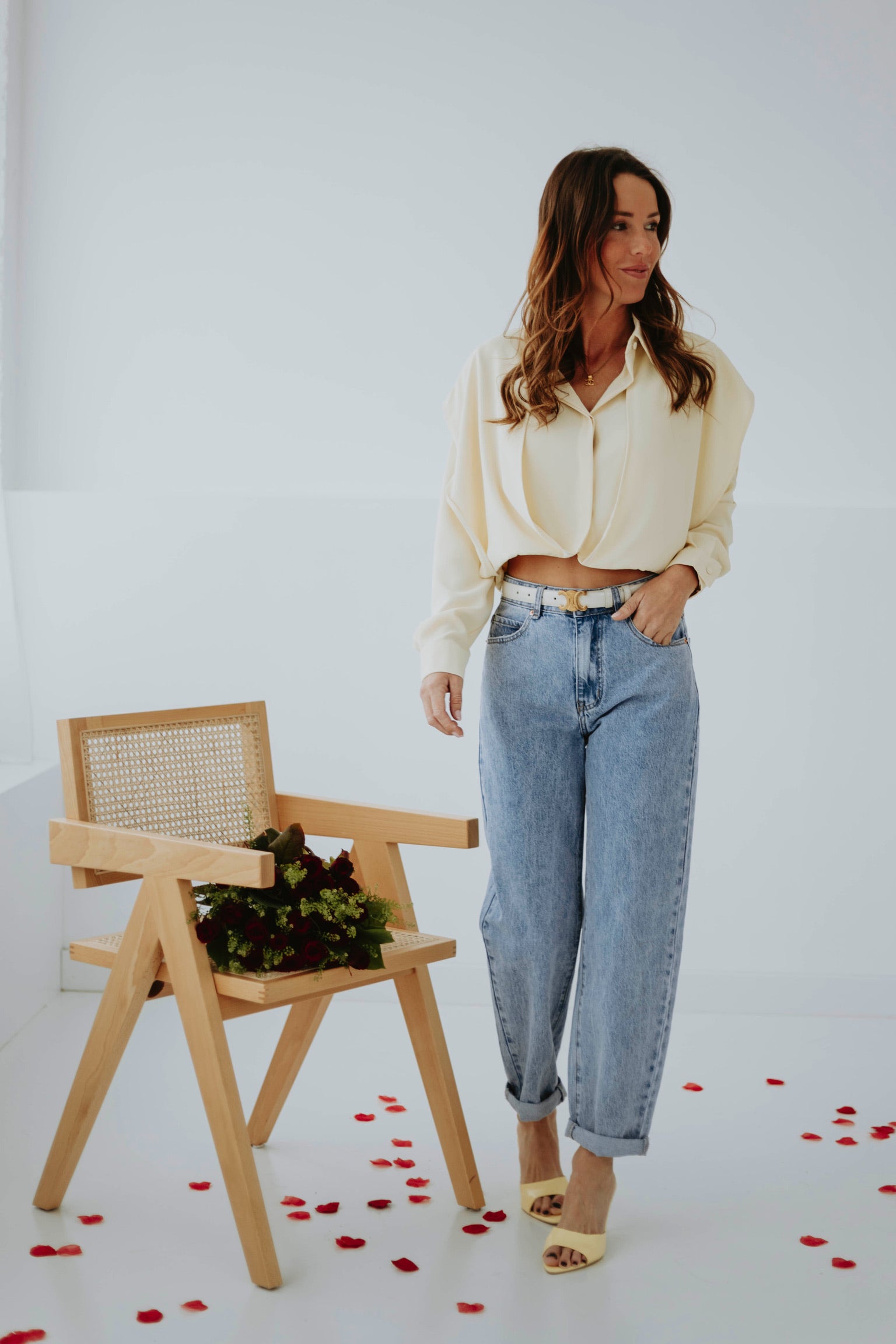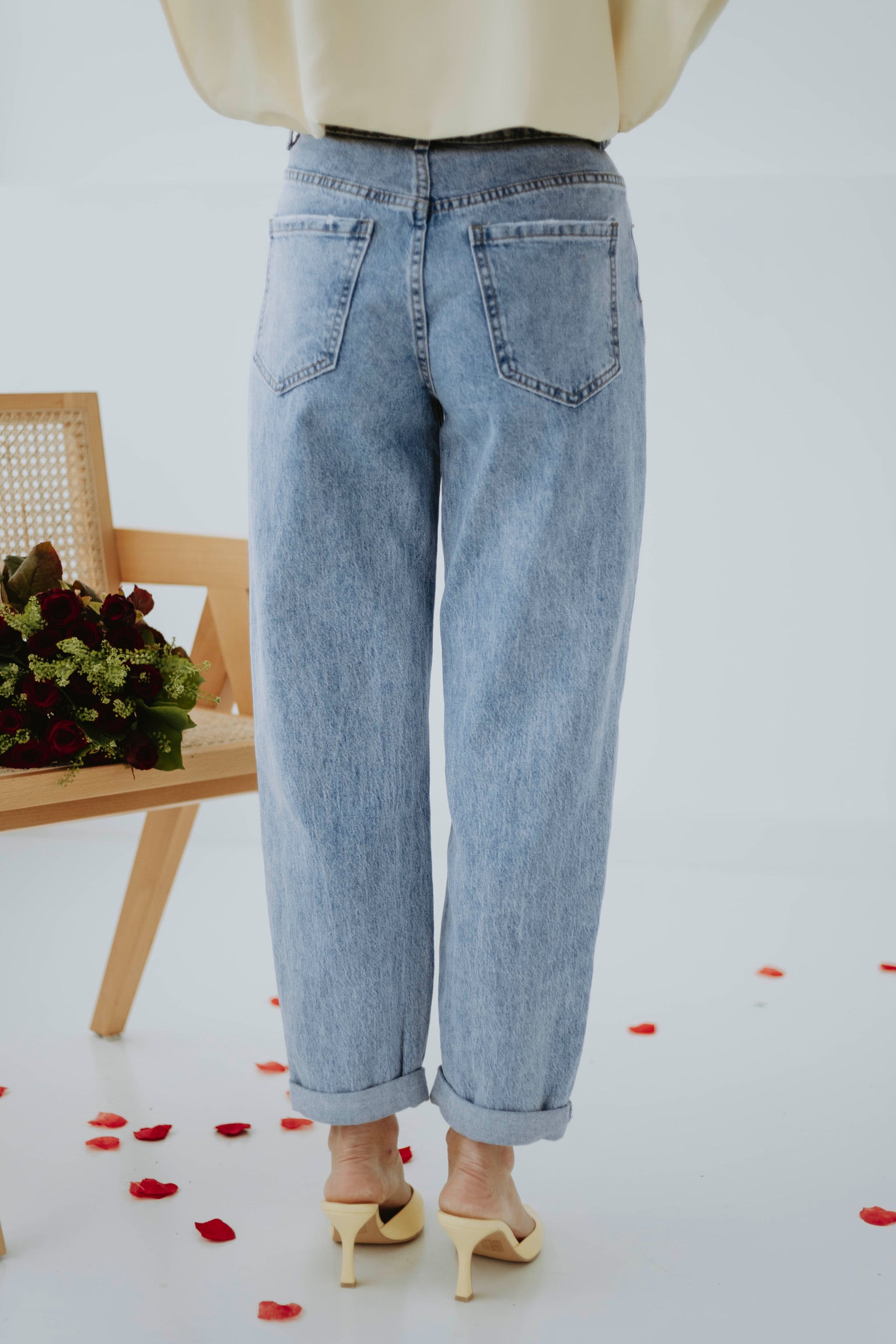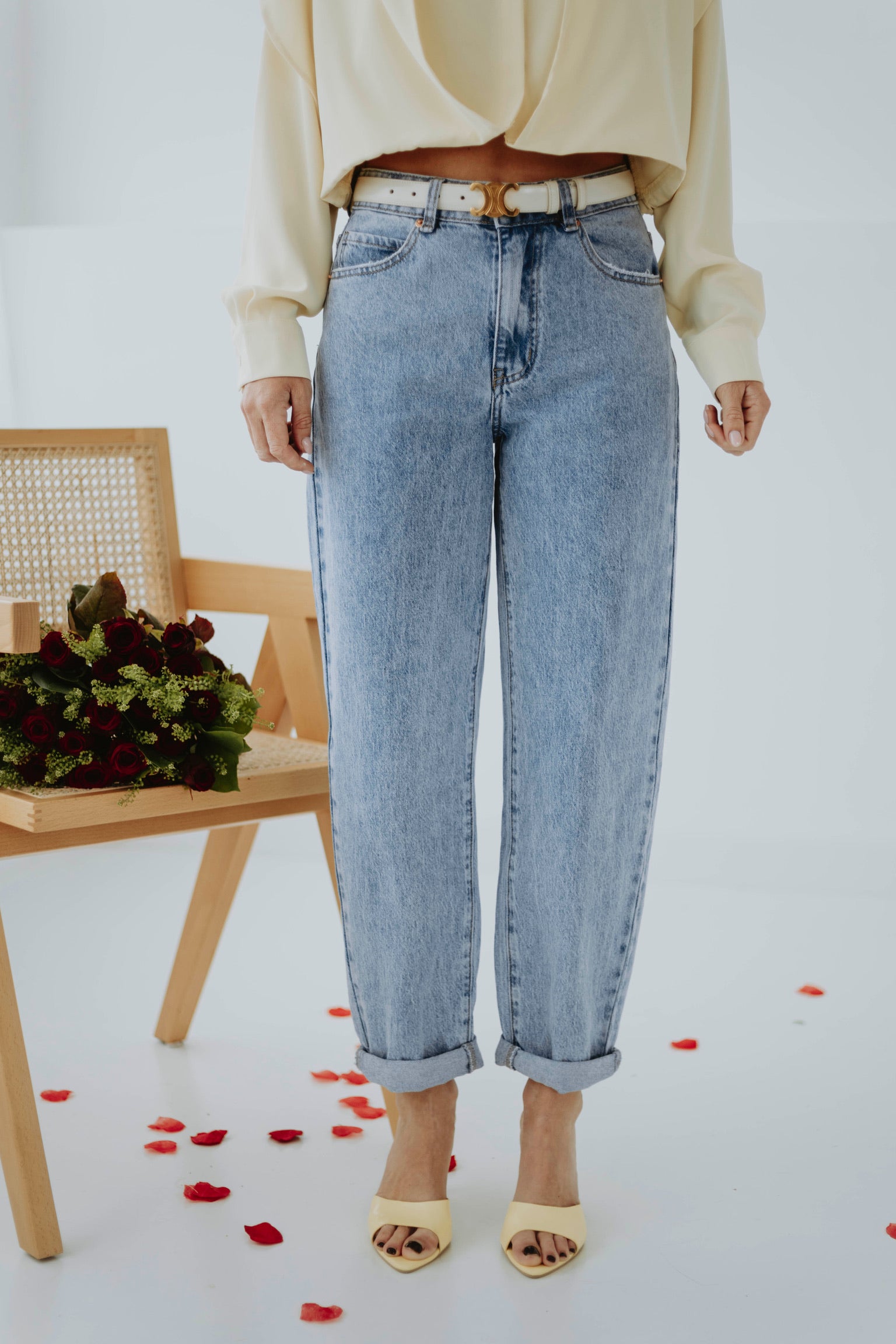 De frisse blauwe wassing geeft een tijdloze en ontspannen uitstraling. Het mom-fit silhouet zit comfortabel en zorgt voor een nonchalante maar stijlvolle look. Perfect om eindeloos te combineren voor een moeiteloze lente-outfit.