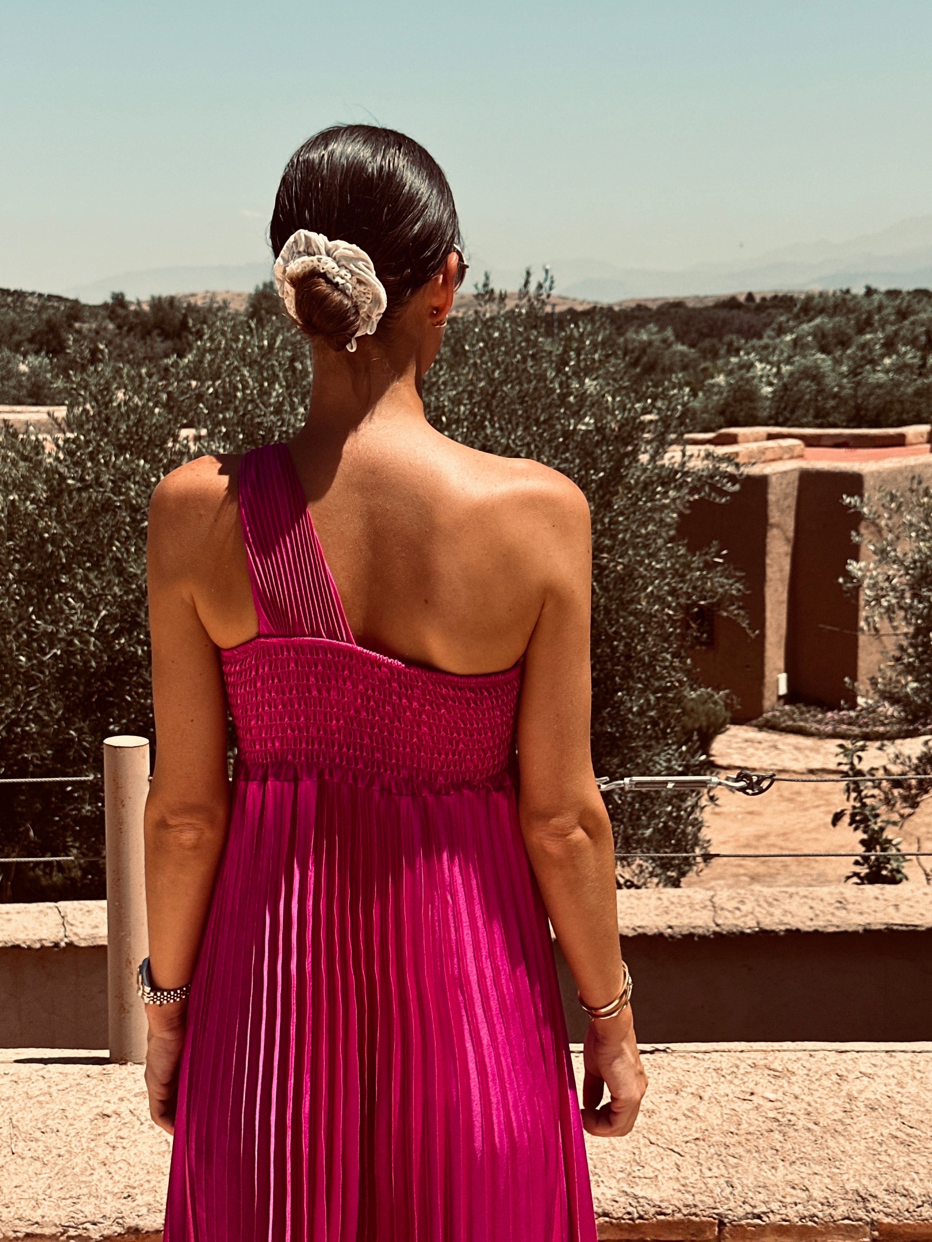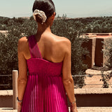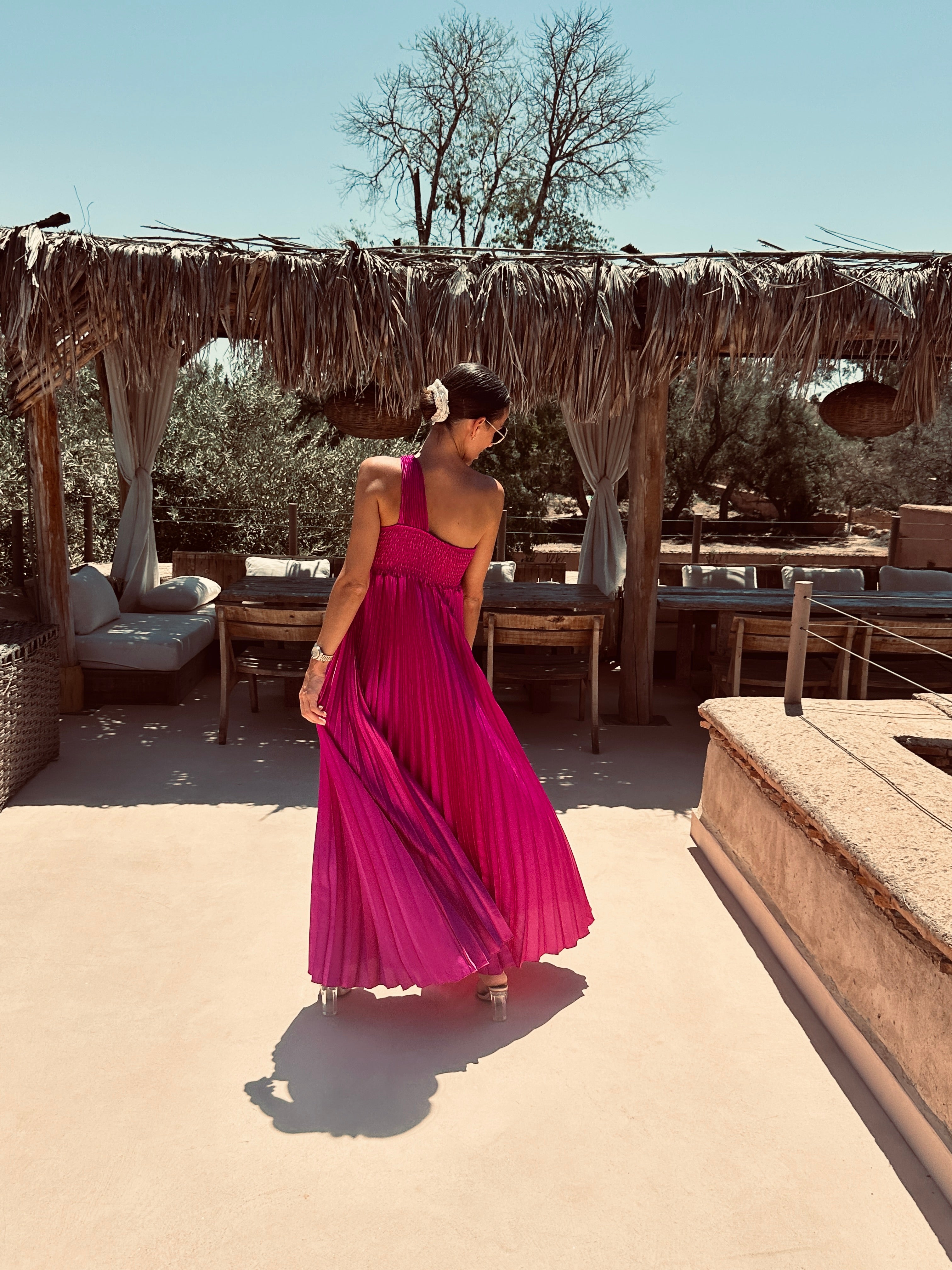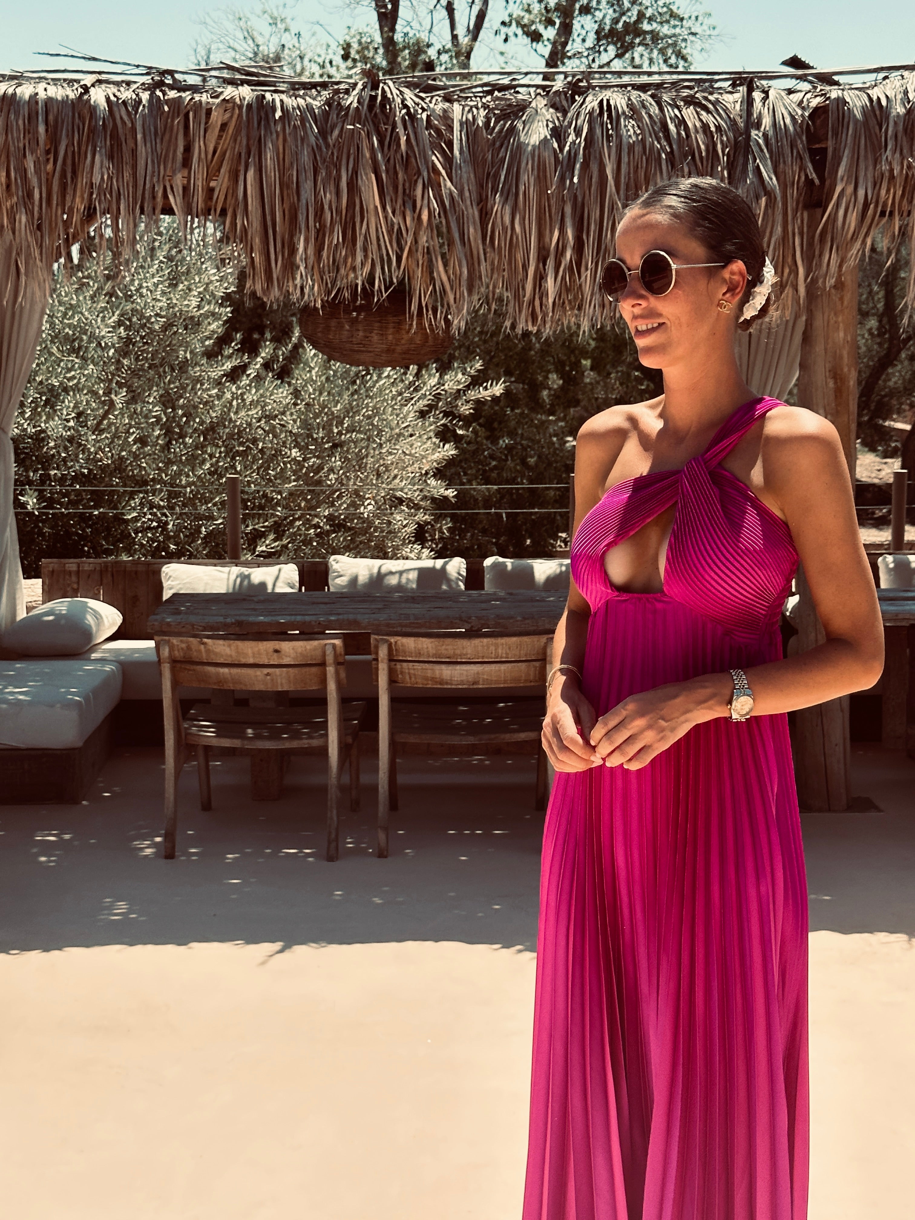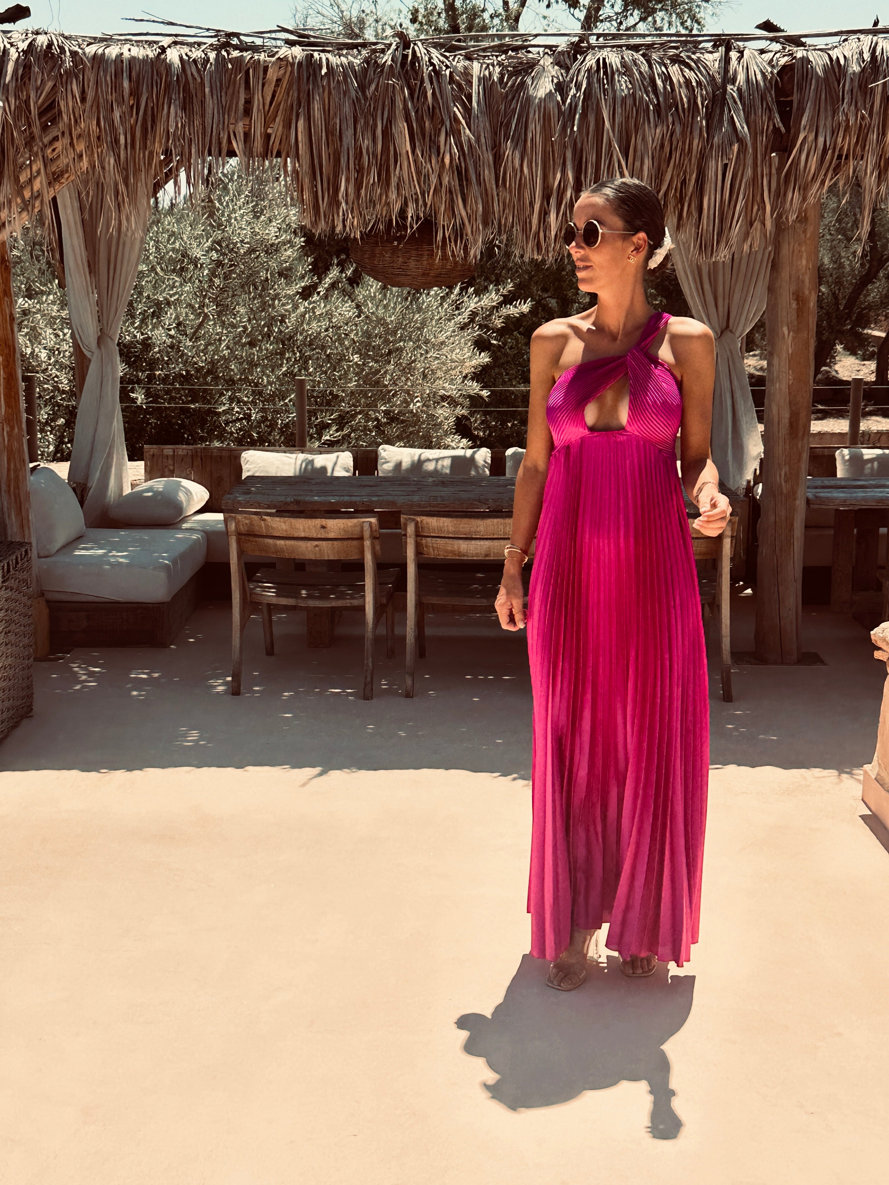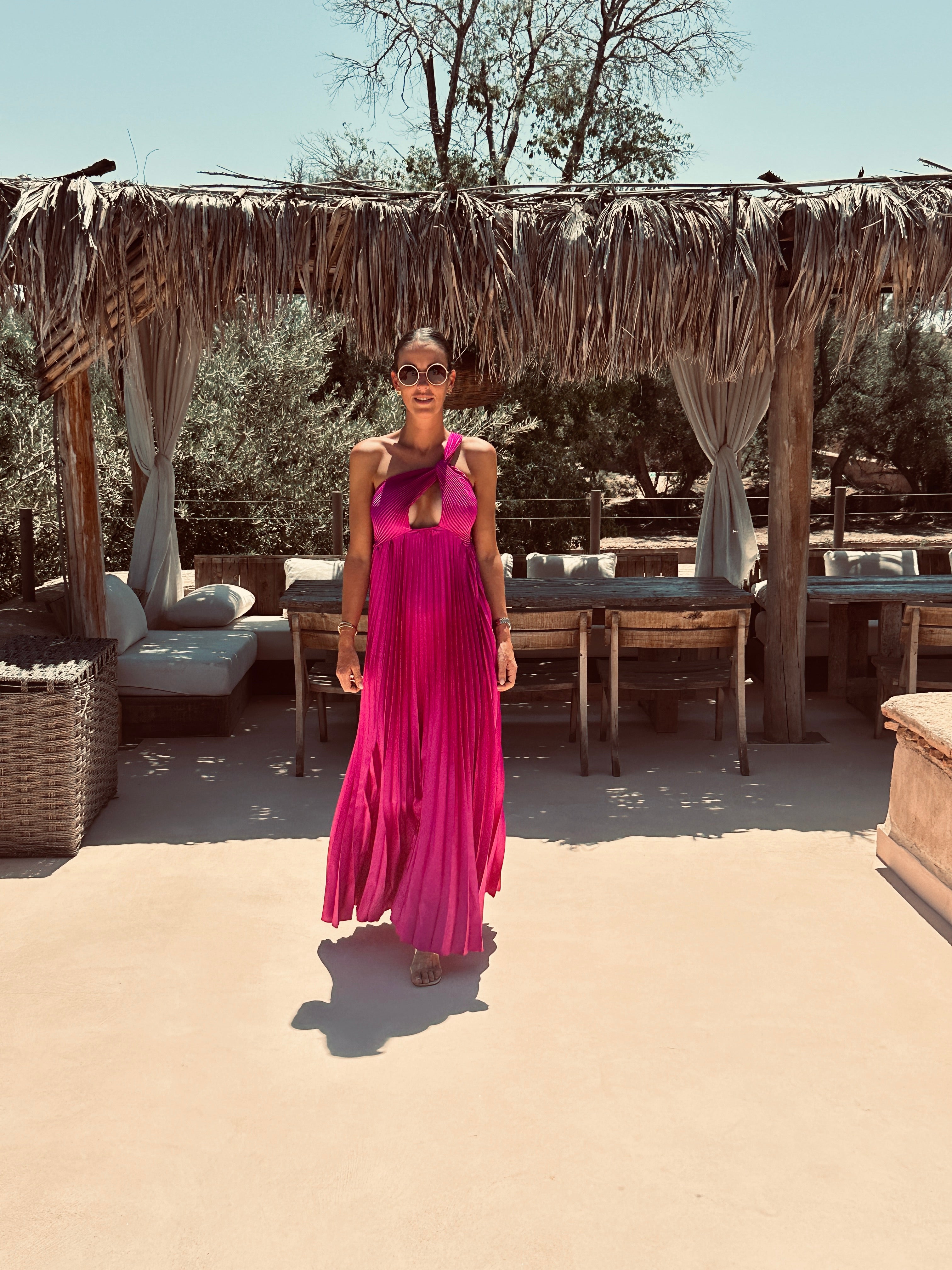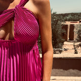 CARA MAGENTA PLISSÉ BRIDAL DRESS