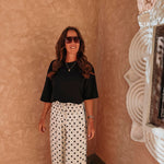 Tijdloos zwart en een eenvoudige snit zorgen voor een elegante, rustige basis die overal bij past. De halflange mouwen geven een luchtig gevoel en maken het ideaal voor warme dagen met een verfijnde uitstraling.