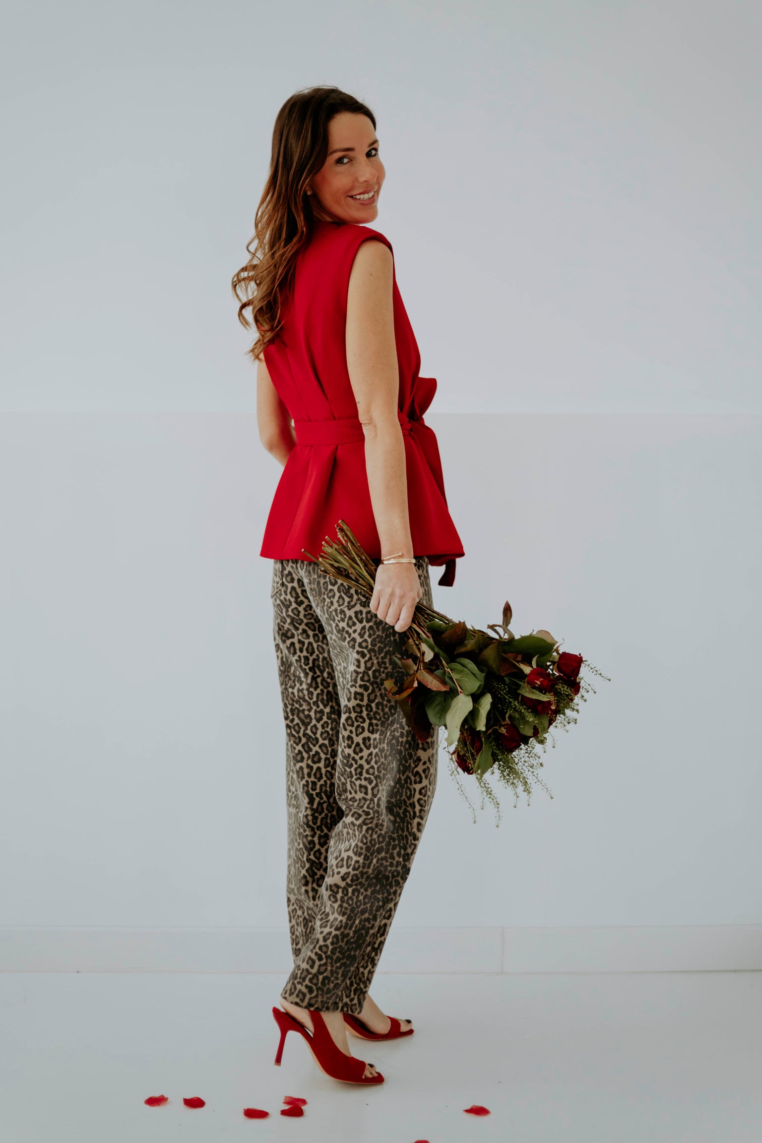 De krachtige rode kleur zorgt voor een opvallende en zelfverzekerde uitstraling. Het mouwloze ontwerp voelt licht en modern aan, terwijl het lintje in de taille een vrouwelijk en speels accent geeft. Perfect om een outfit net dat beetje extra pit en flair te geven.