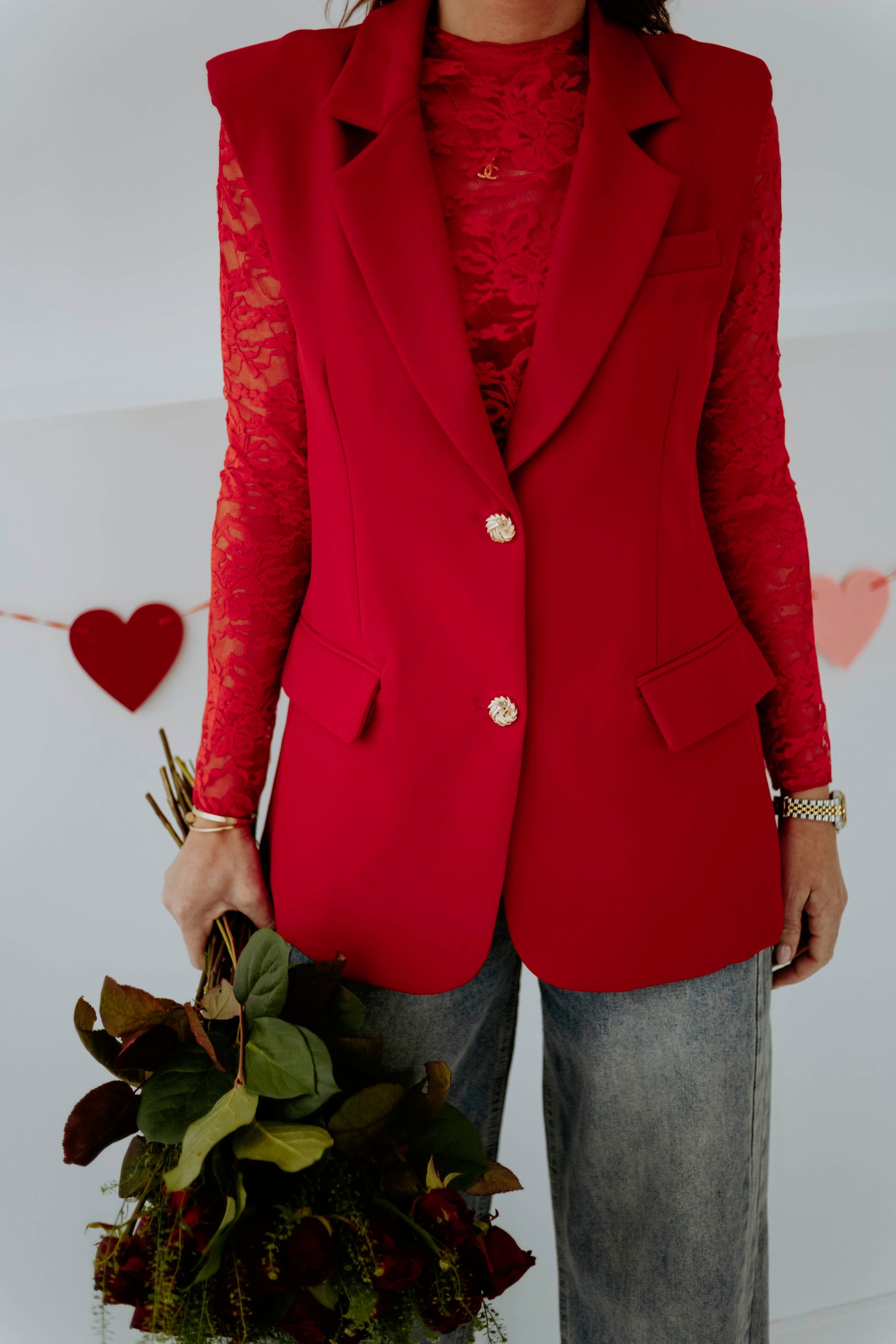 De intense rode kleur zorgt voor een krachtige en zelfverzekerde uitstraling. Het mouwloze ontwerp voelt licht en modern aan en is perfect om te layeren. Ideaal om een outfit een gedurfde en stijlvolle touch te geven.
