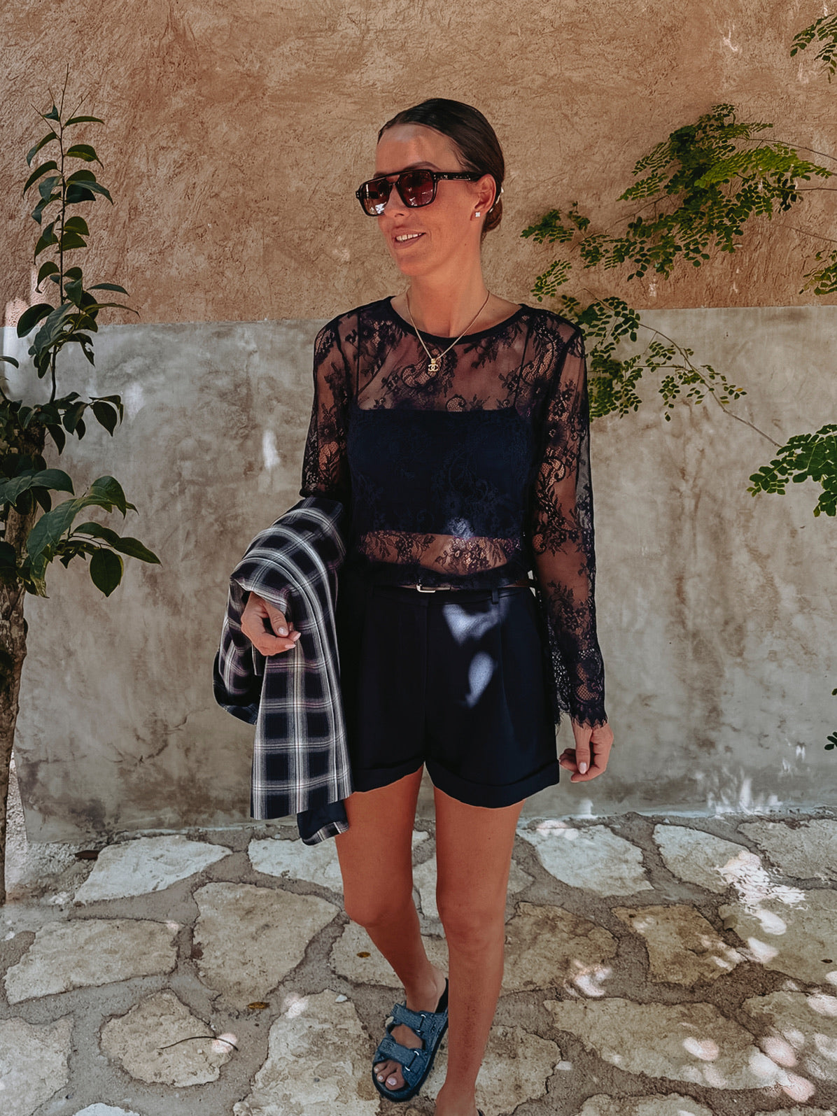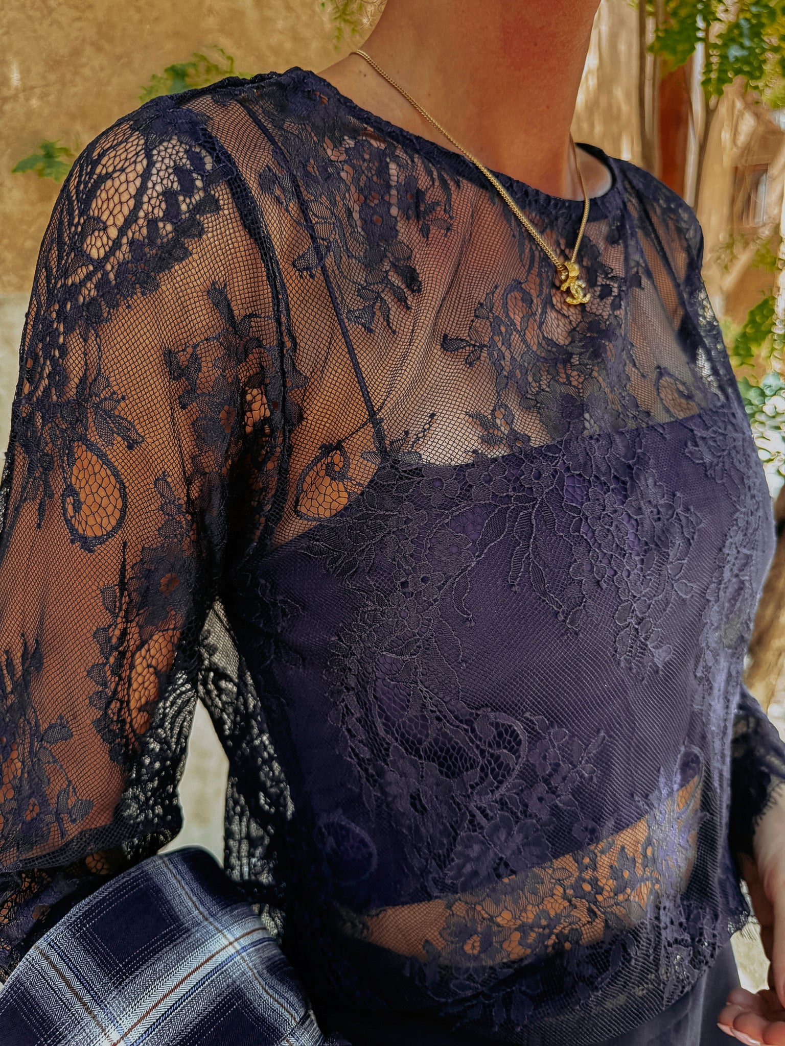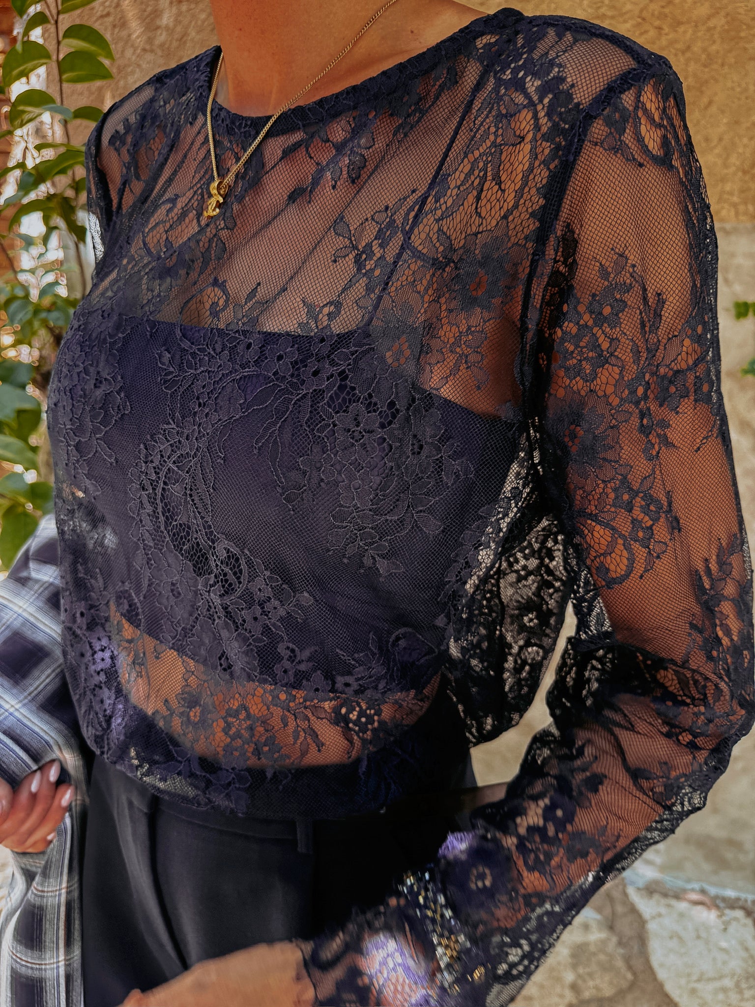 ELENA DARK BLUE LACE LONGSLEEVE TOP