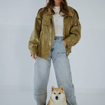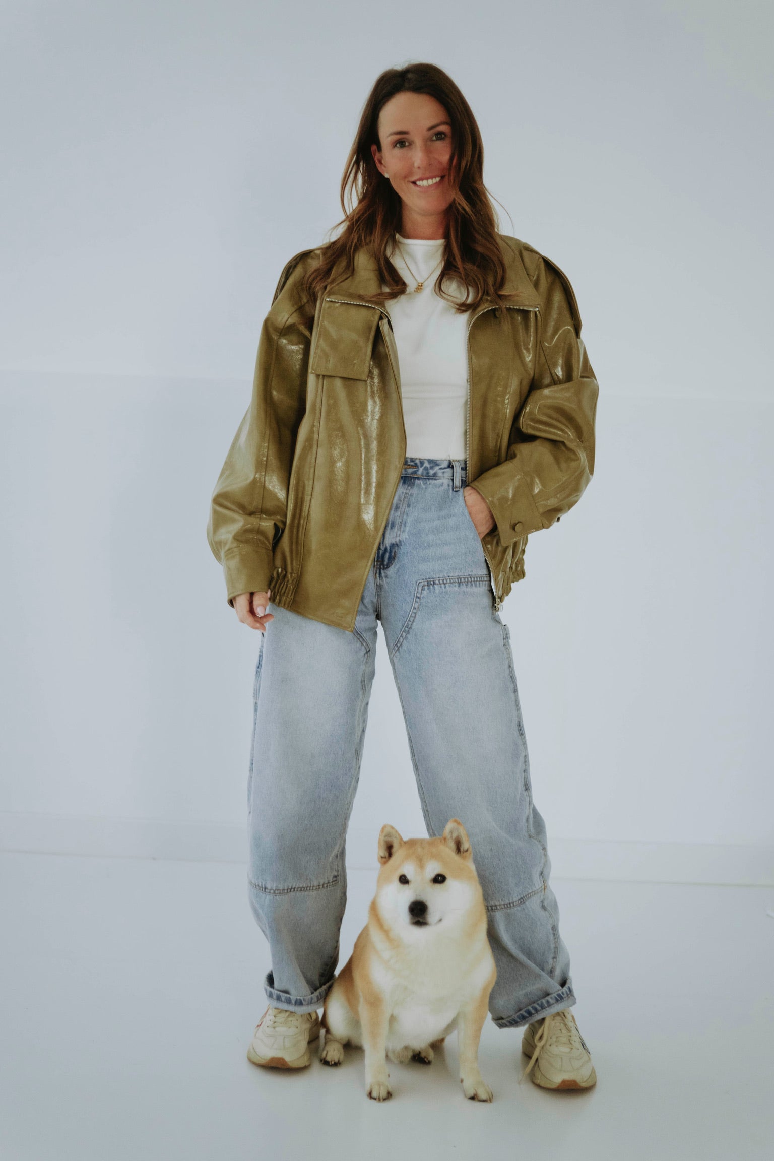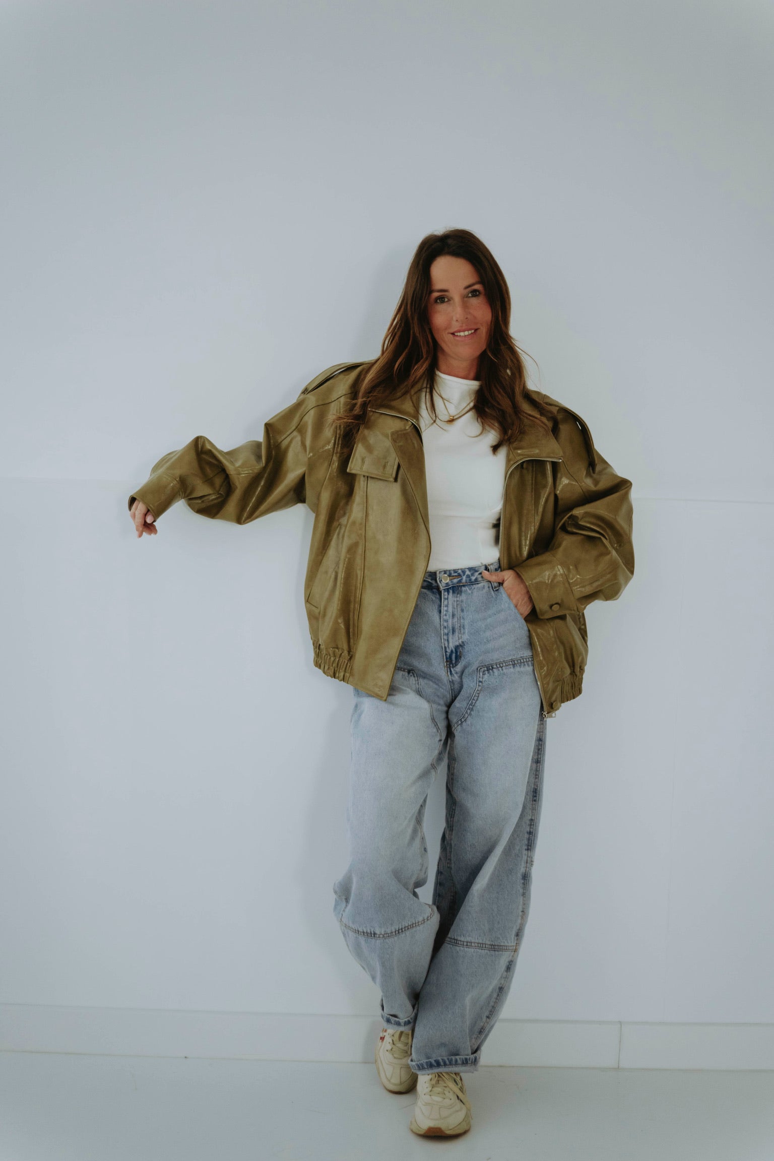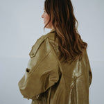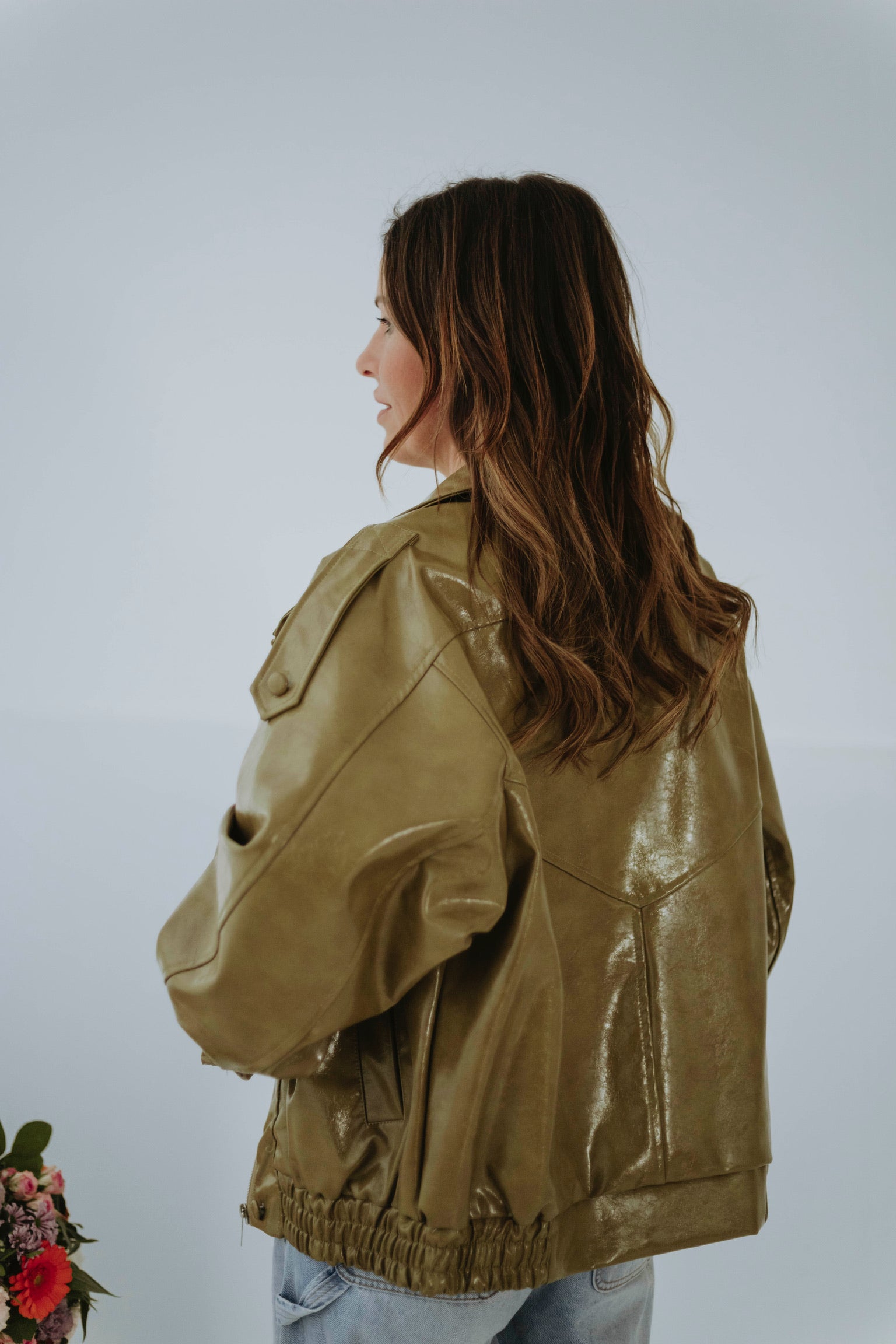 EVELYNE OLIVE GREEN SHINY LEATHER JACKET