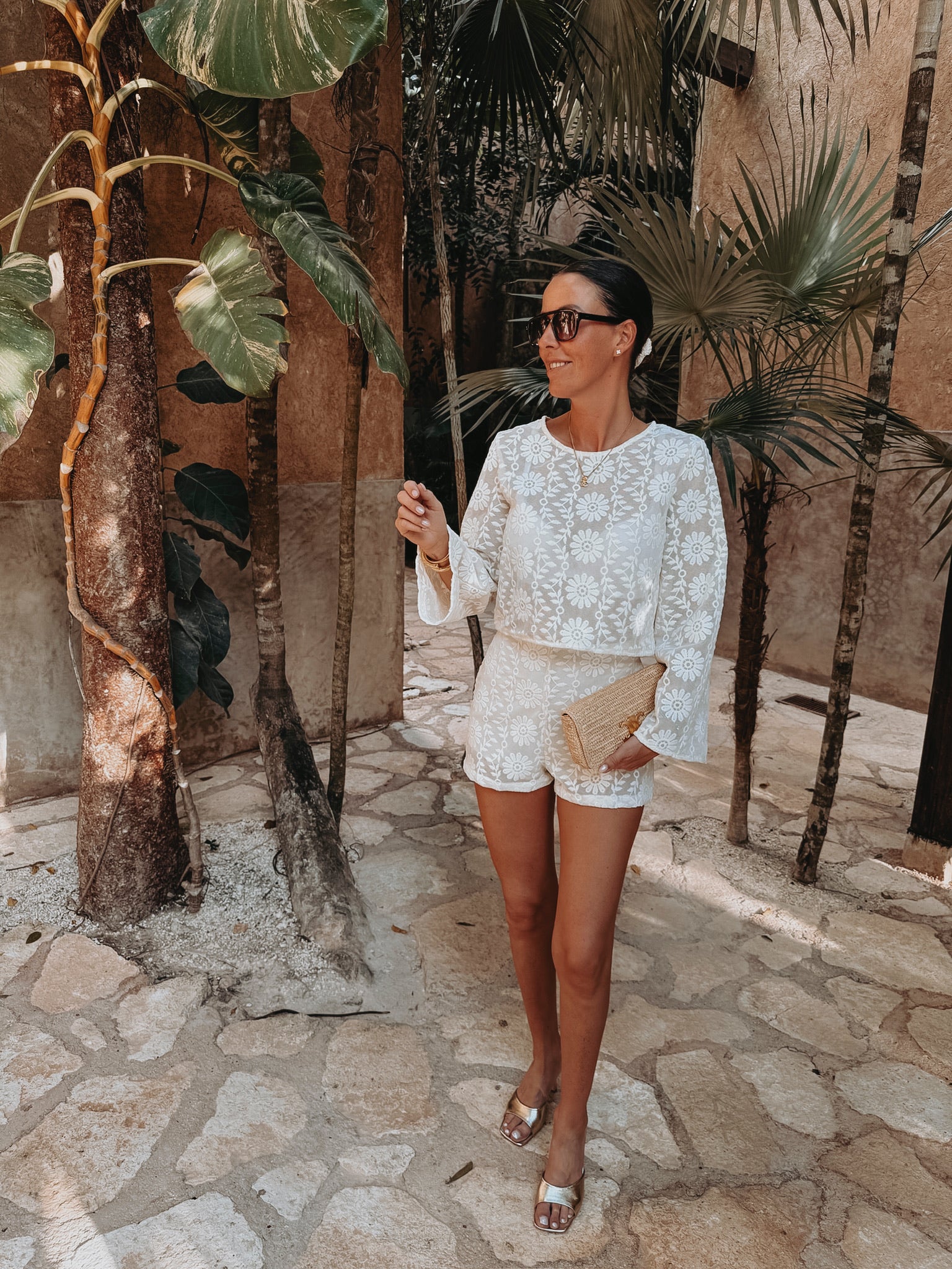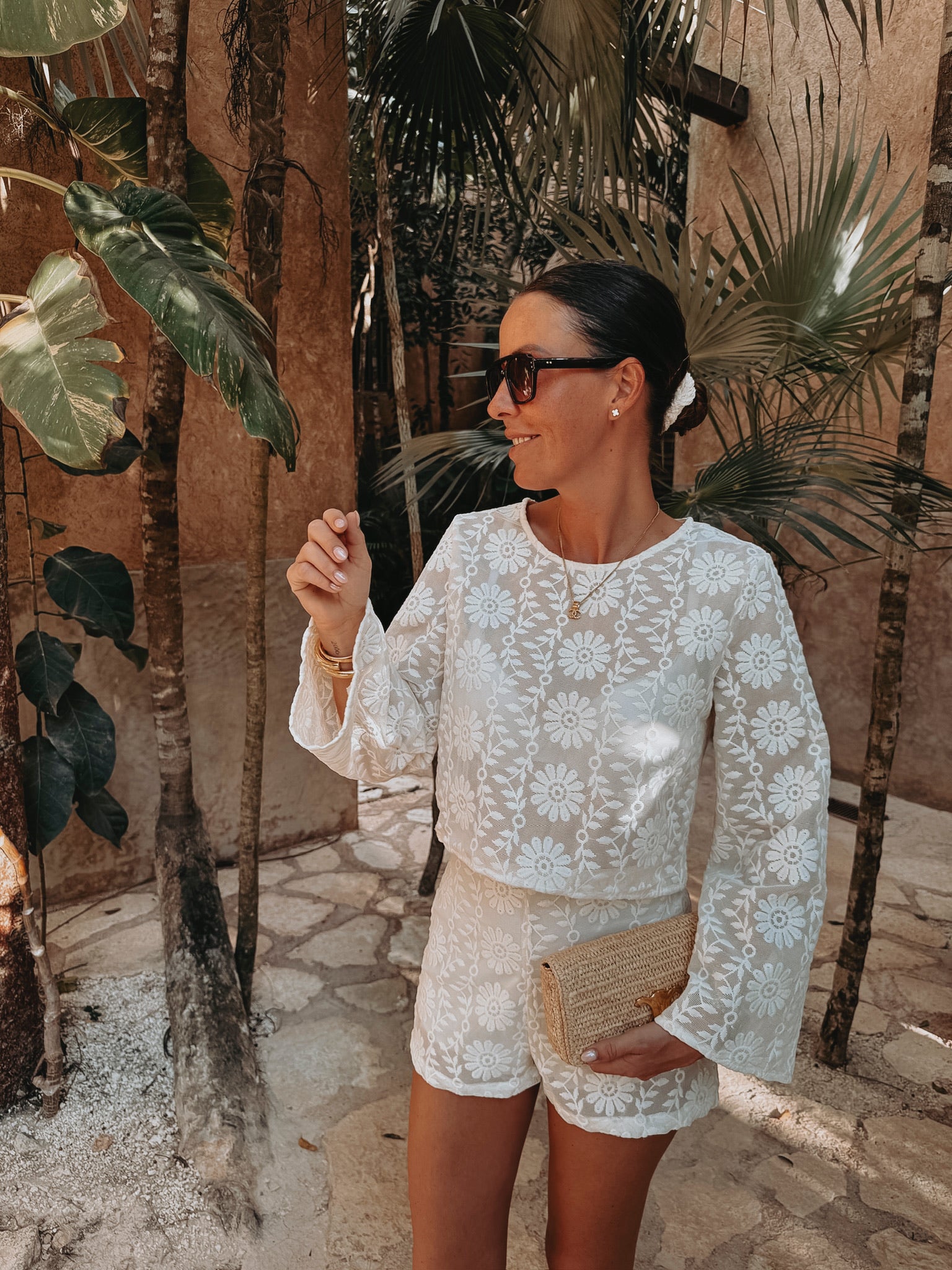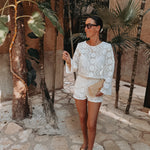 Een luchtige blouse met verfijnd haakwerk die perfect past bij zonnige dagen en lange zomeravonden. De losse, elegante uitstraling maakt hem ideaal voor een moeiteloos stijlvolle look. Draag samen met de bijpassende short of combineer los voor een relaxte vakantiesfeer.