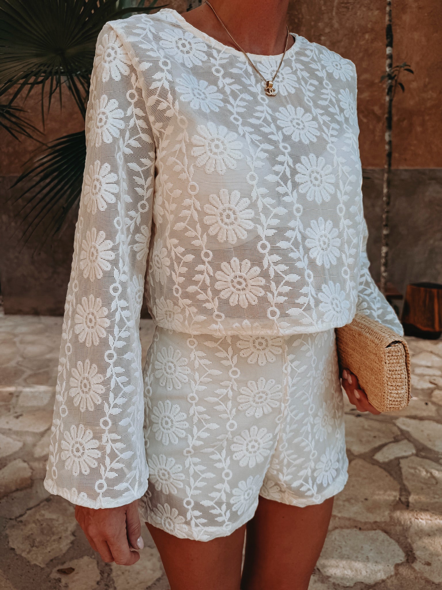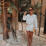 Een luchtige short met verfijnd haakwerk die meteen een zonnige, relaxte vibe uitstraalt. Ideaal voor warme dagen waarop je moeiteloos stijlvol voor de dag wilt komen. Combineer met de bijpassende blouse voor een complete set of draag hem los met je favoriete top.