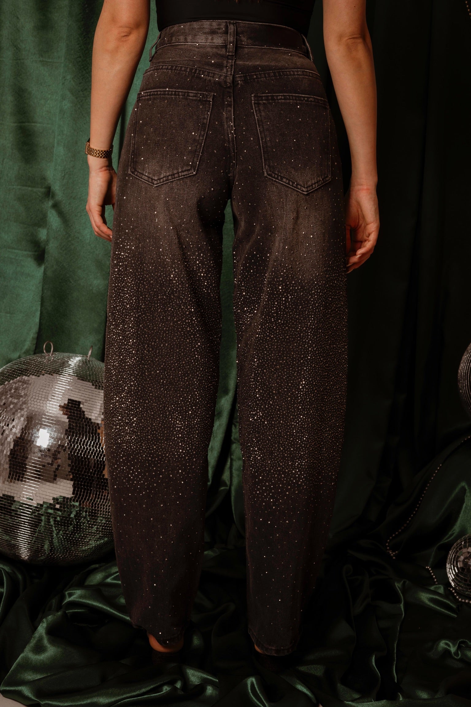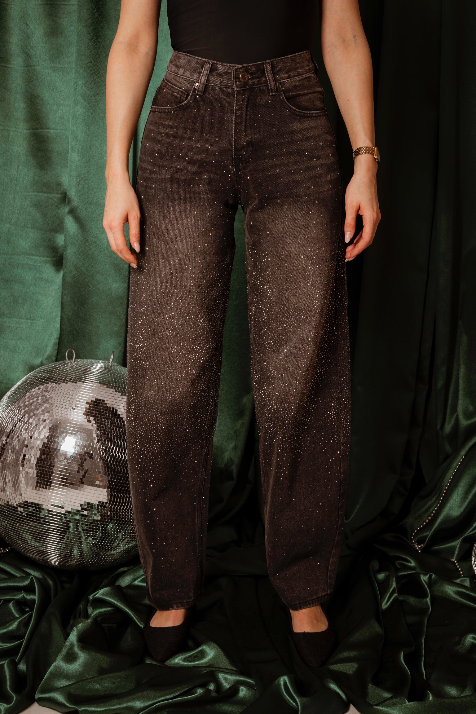 PRE-ORDER GREY RHINESTONE BALLOON JEANS C39