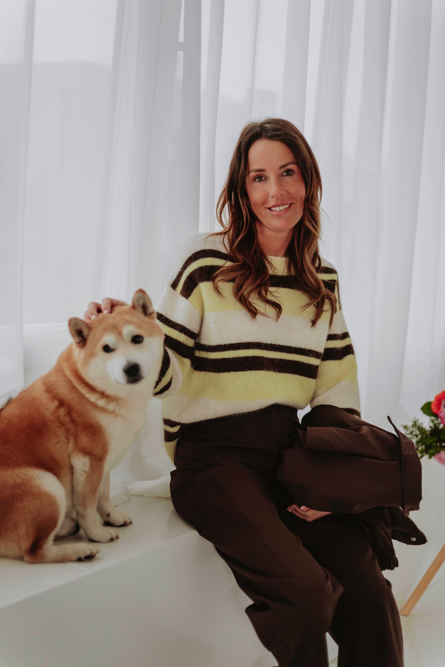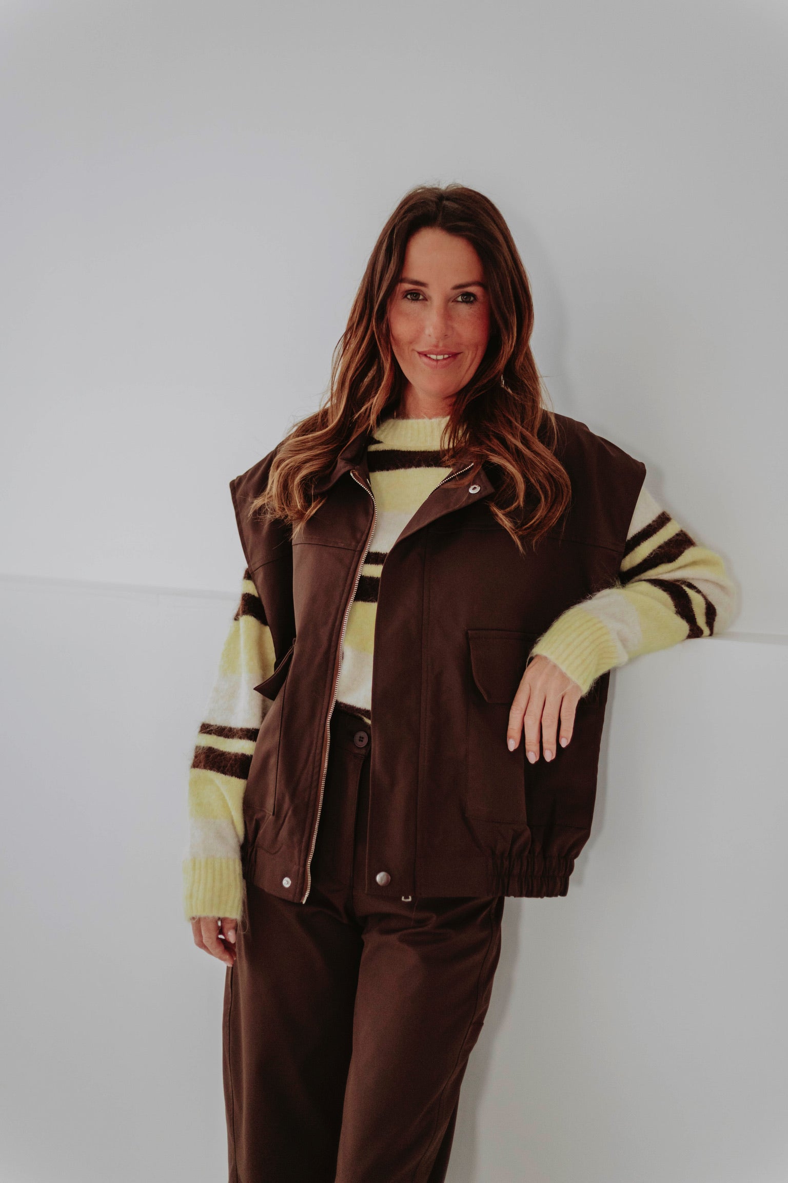 JEMMA YELLOW/BROWN STRIPED KNIT SWEATER