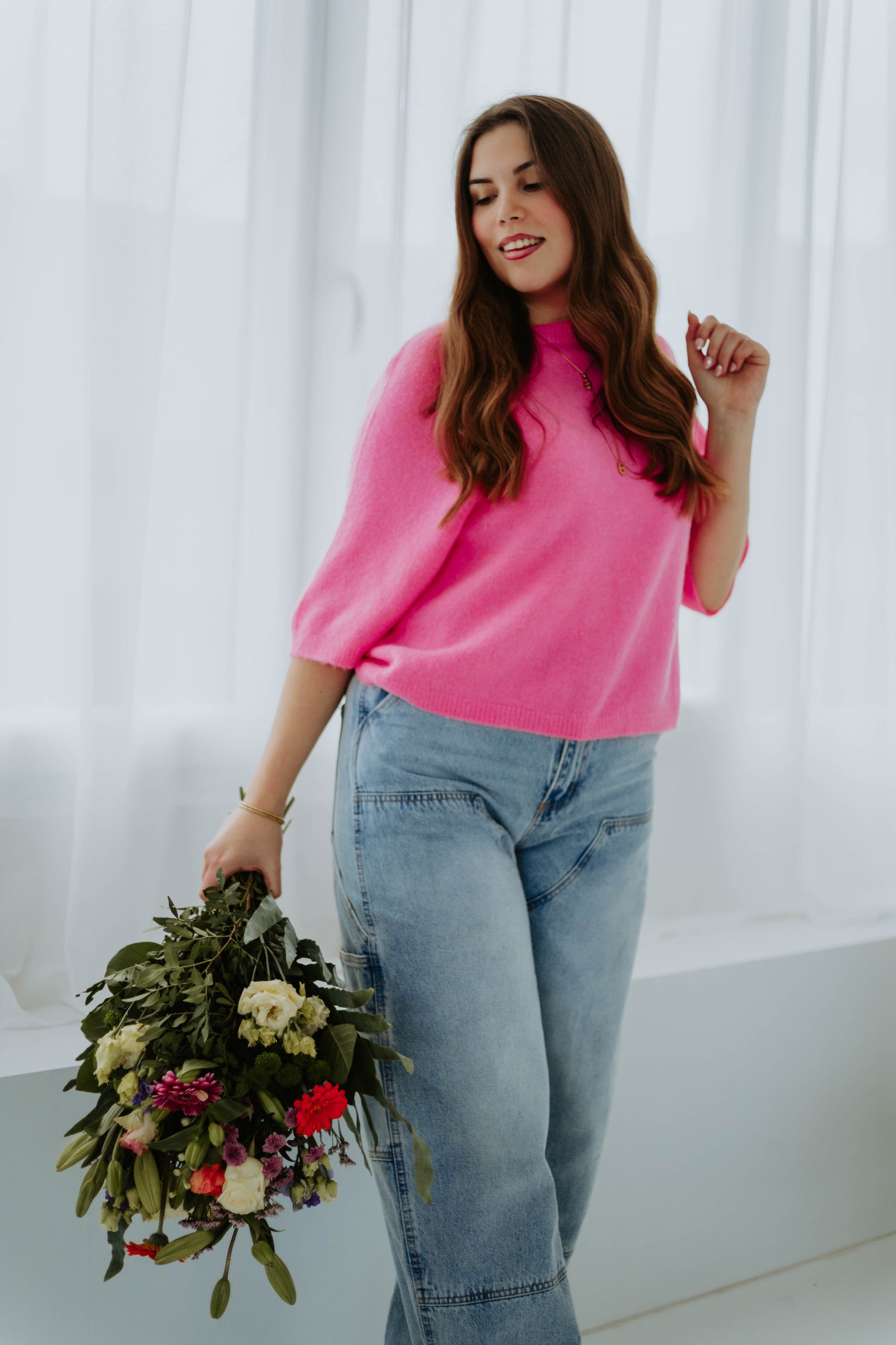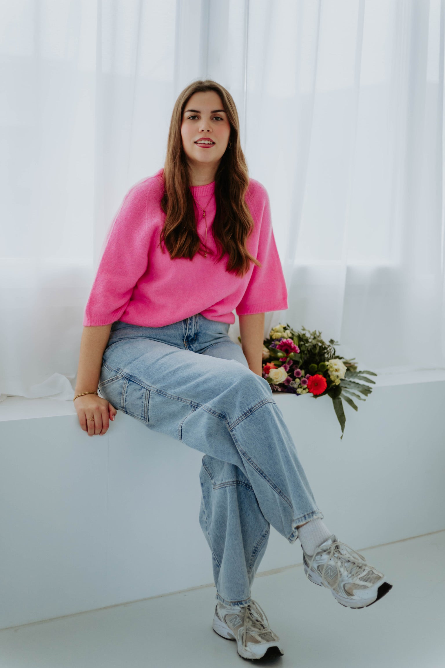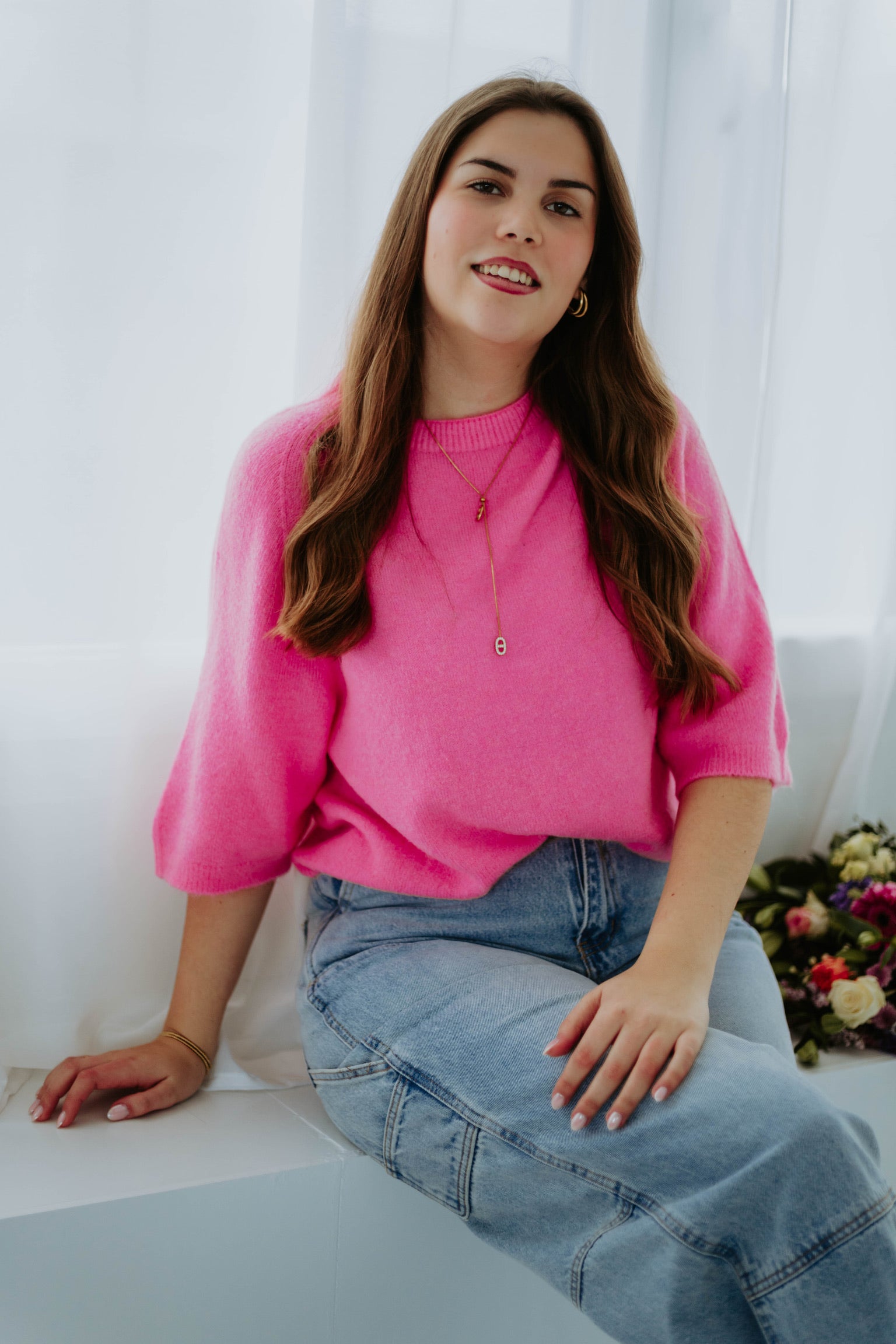 De halflange mouwen en lichte stof maken dit pulletje perfect voor frisse lentedagen. Het eenvoudige model voelt comfortabel aan en krijgt een vrolijke twist door de vele frisse kleuren. Een echte musthave om moeiteloos een lenteachtige en speelse look te creëren.