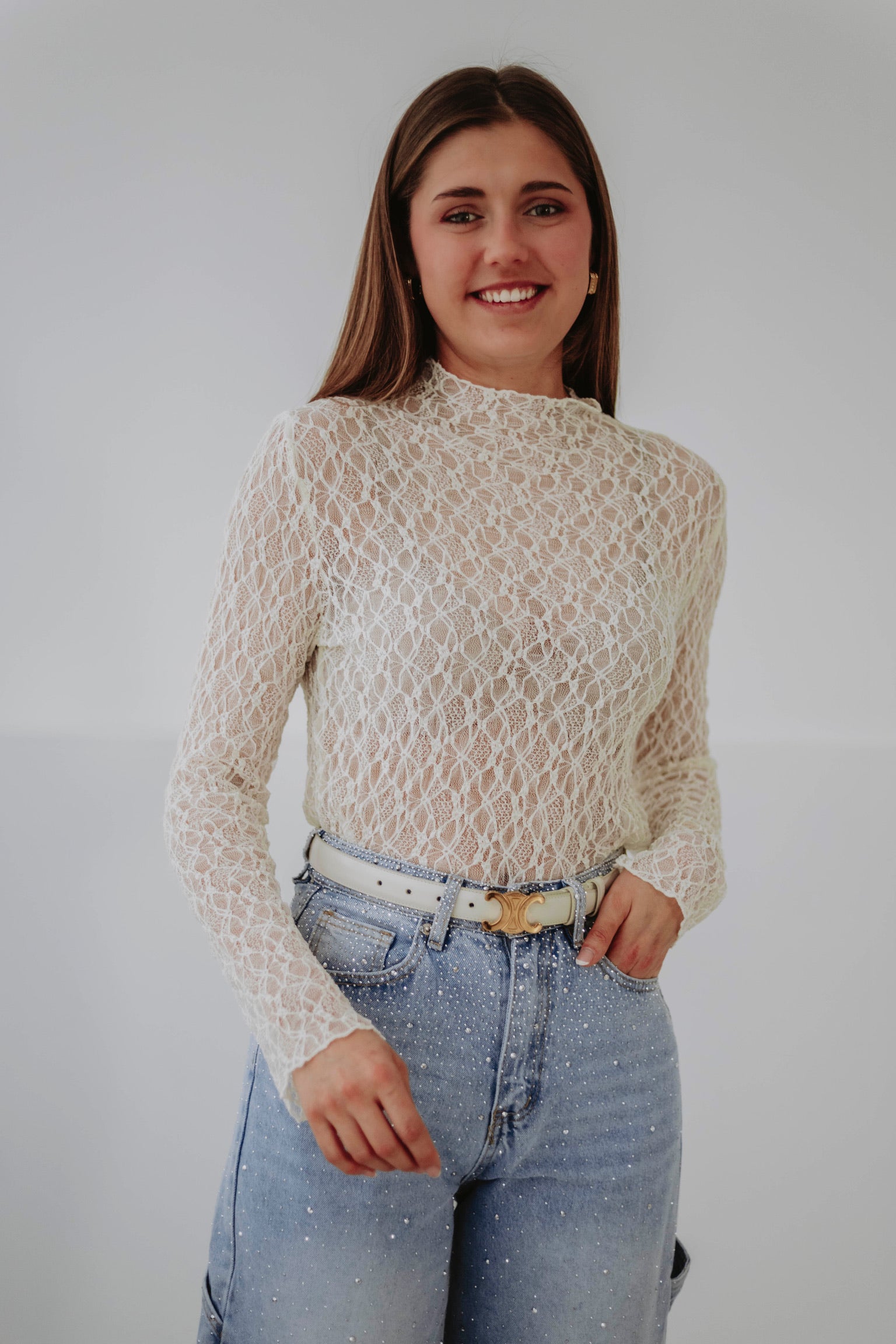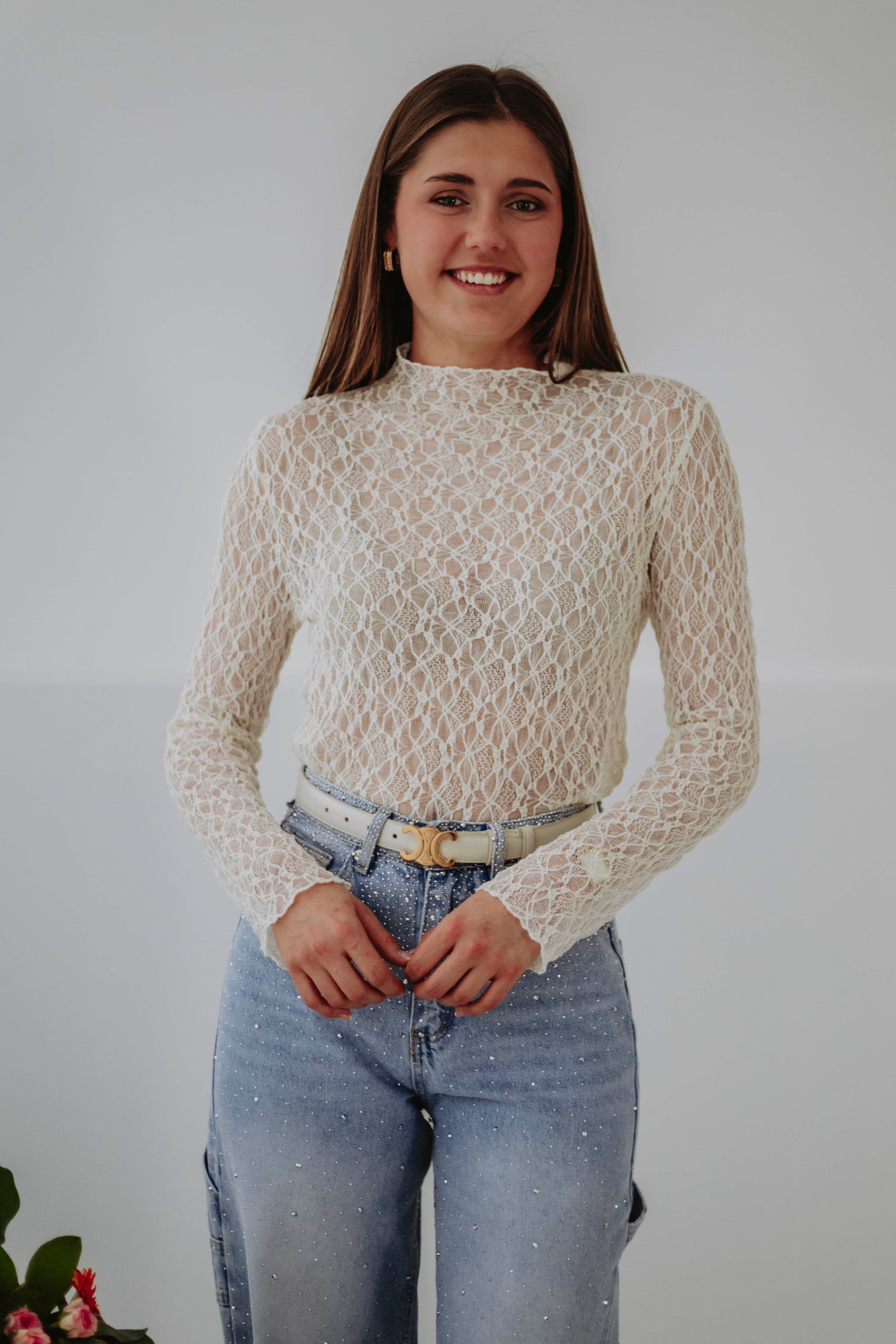 KYENNA ECRU LACE LONGSLEEVE TOP