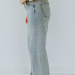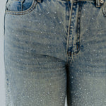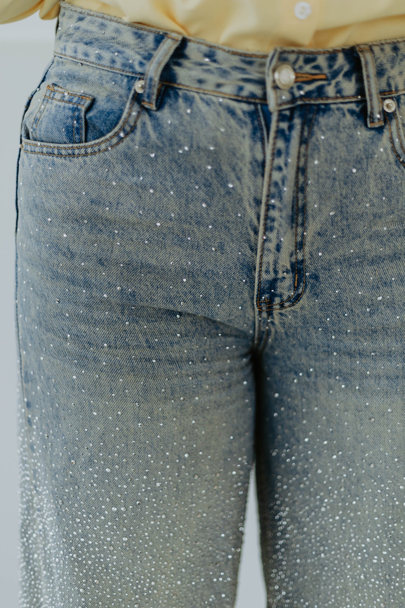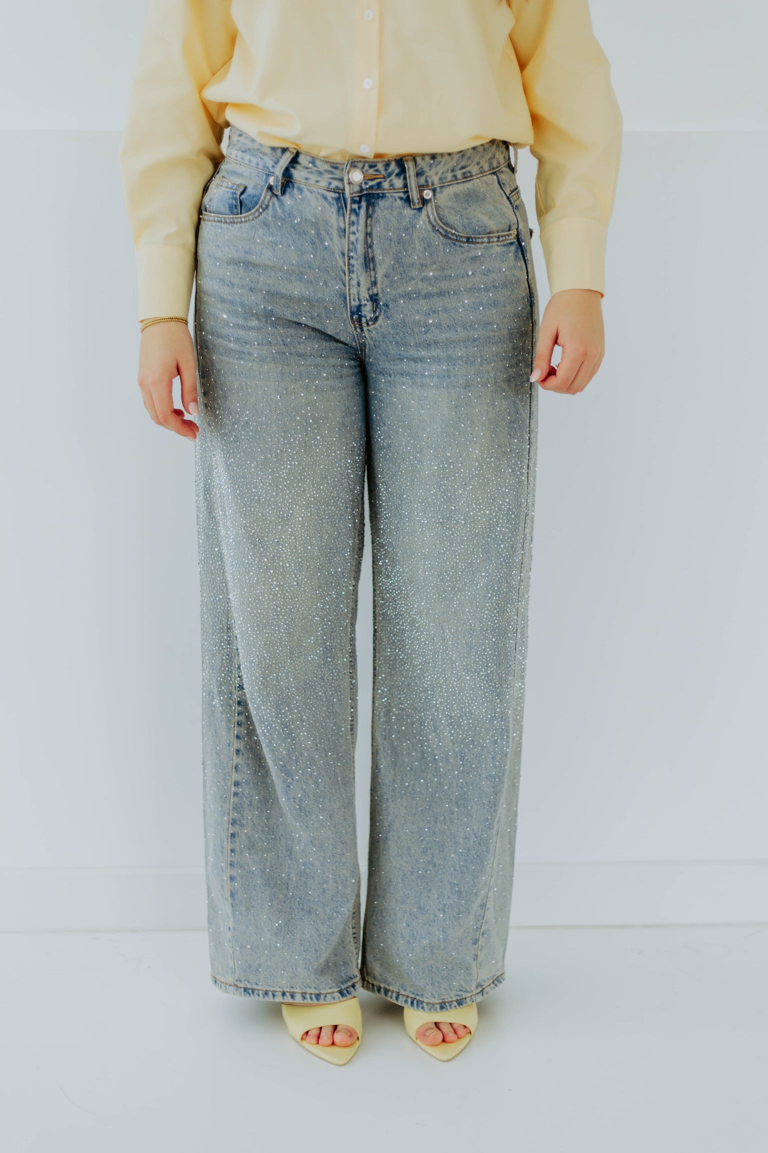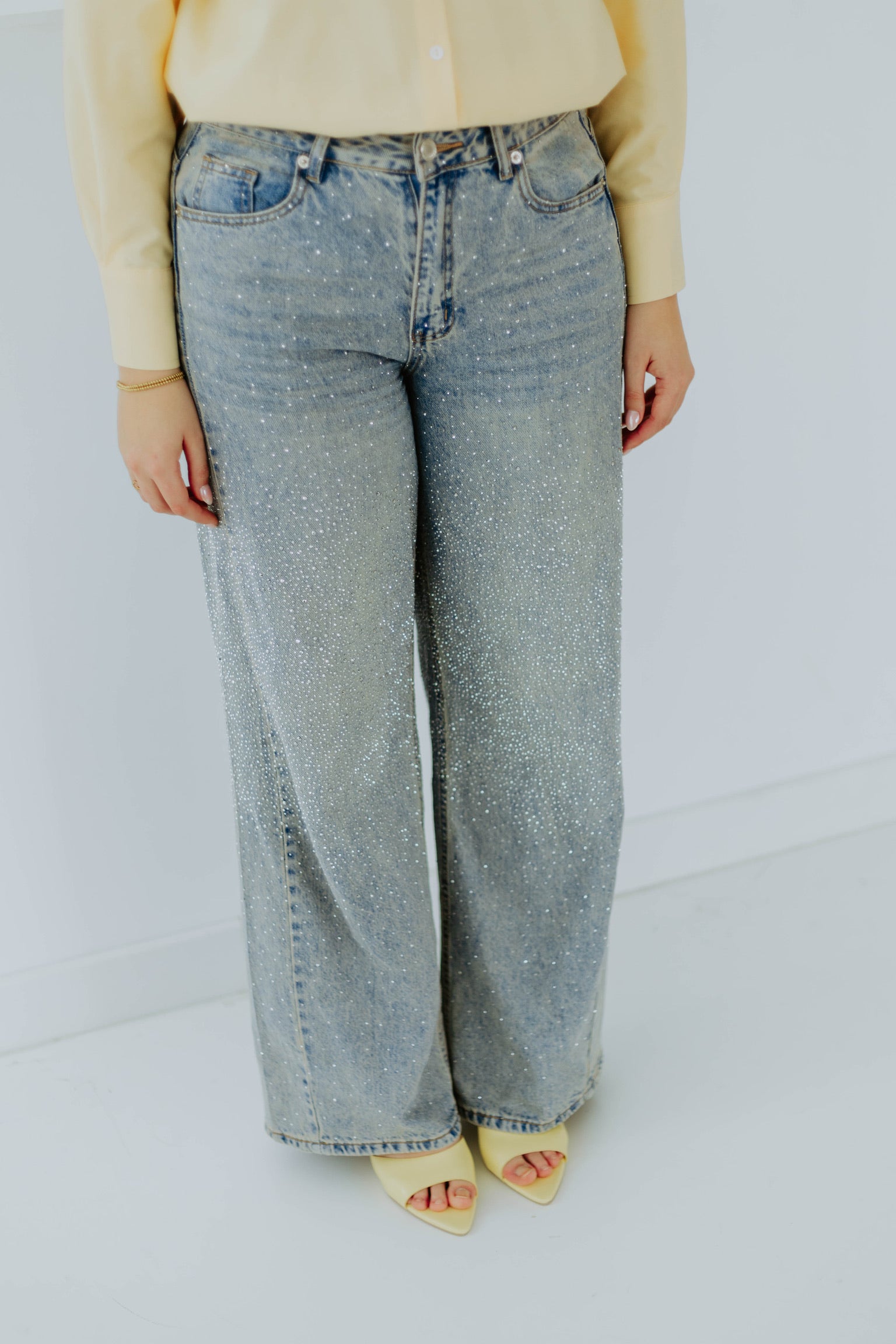 LIGHT BLUE RHINESTONE WIDE LEG JEANS A3022