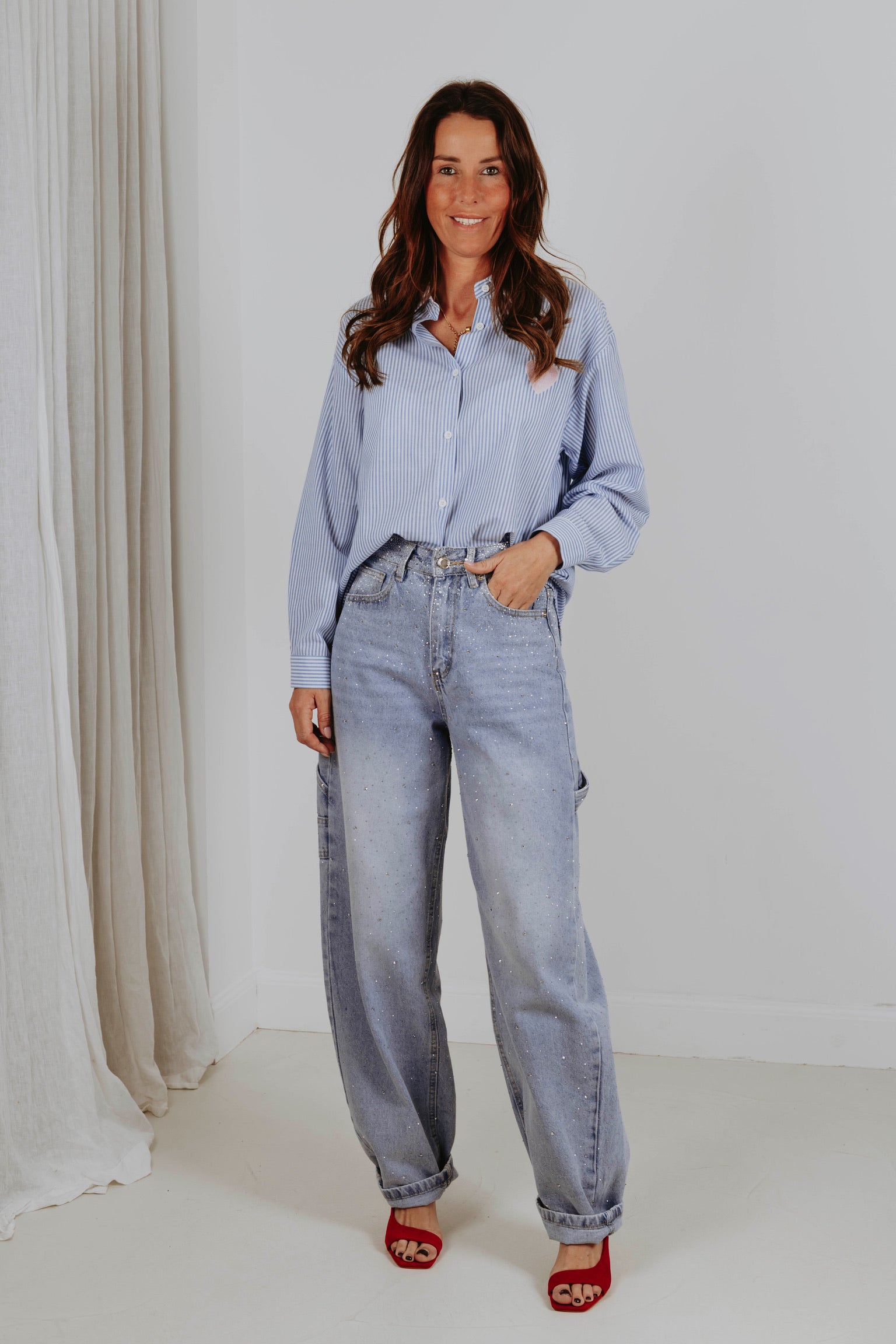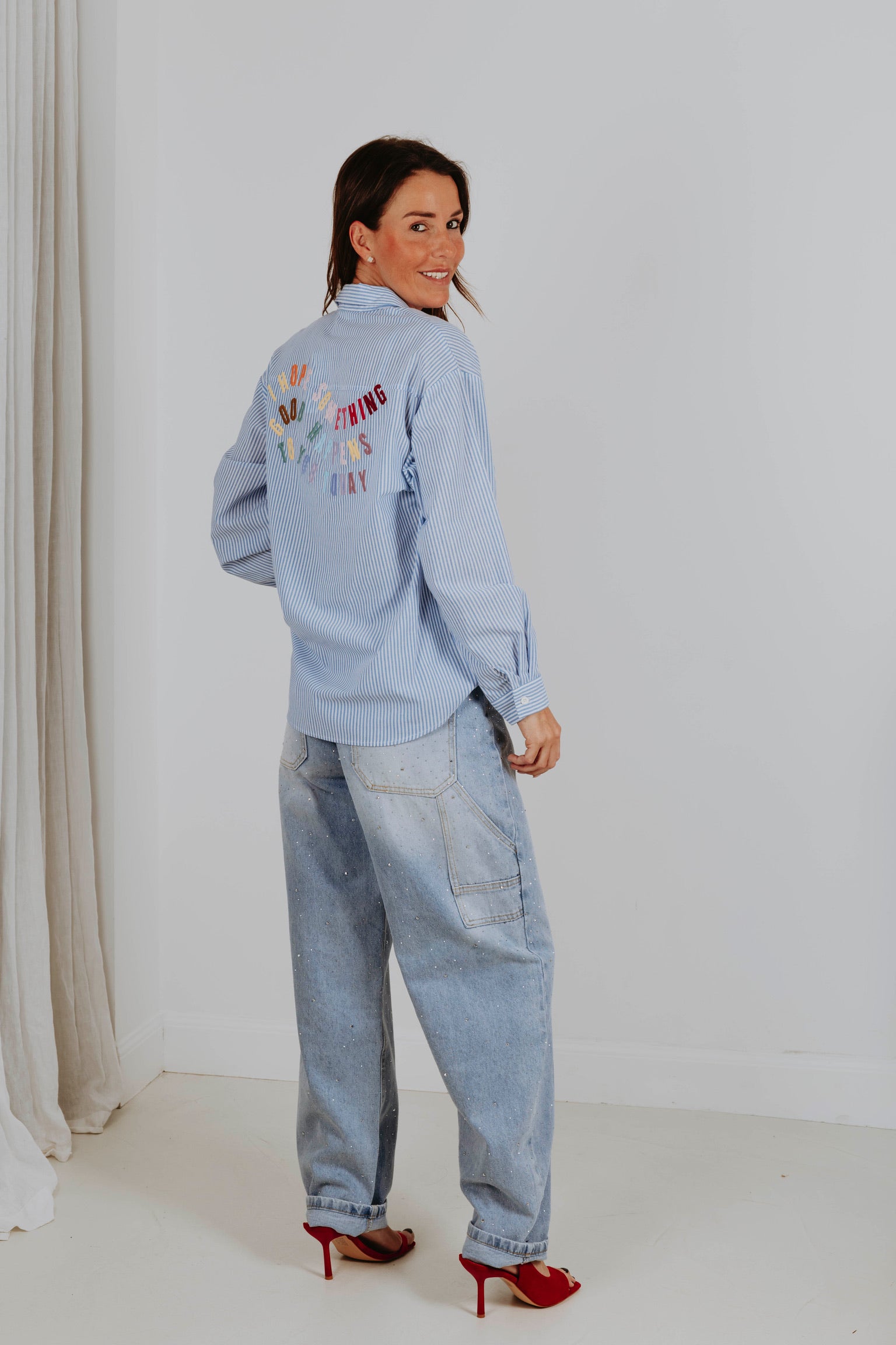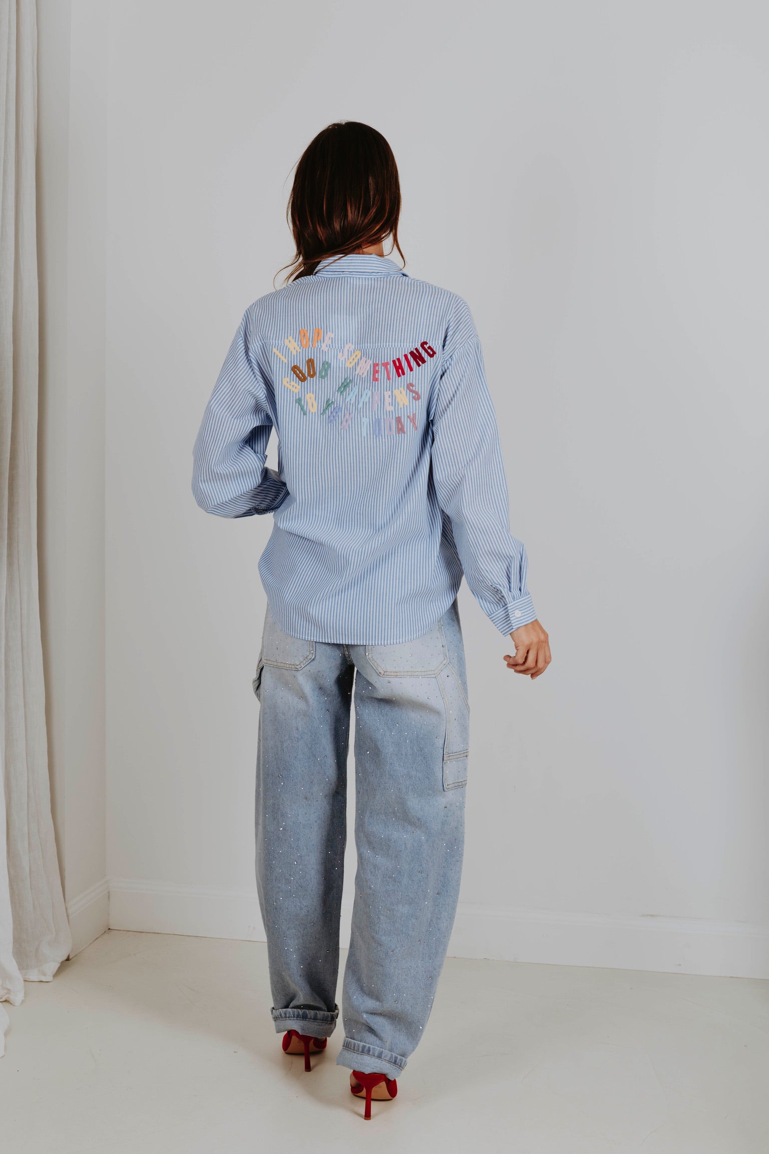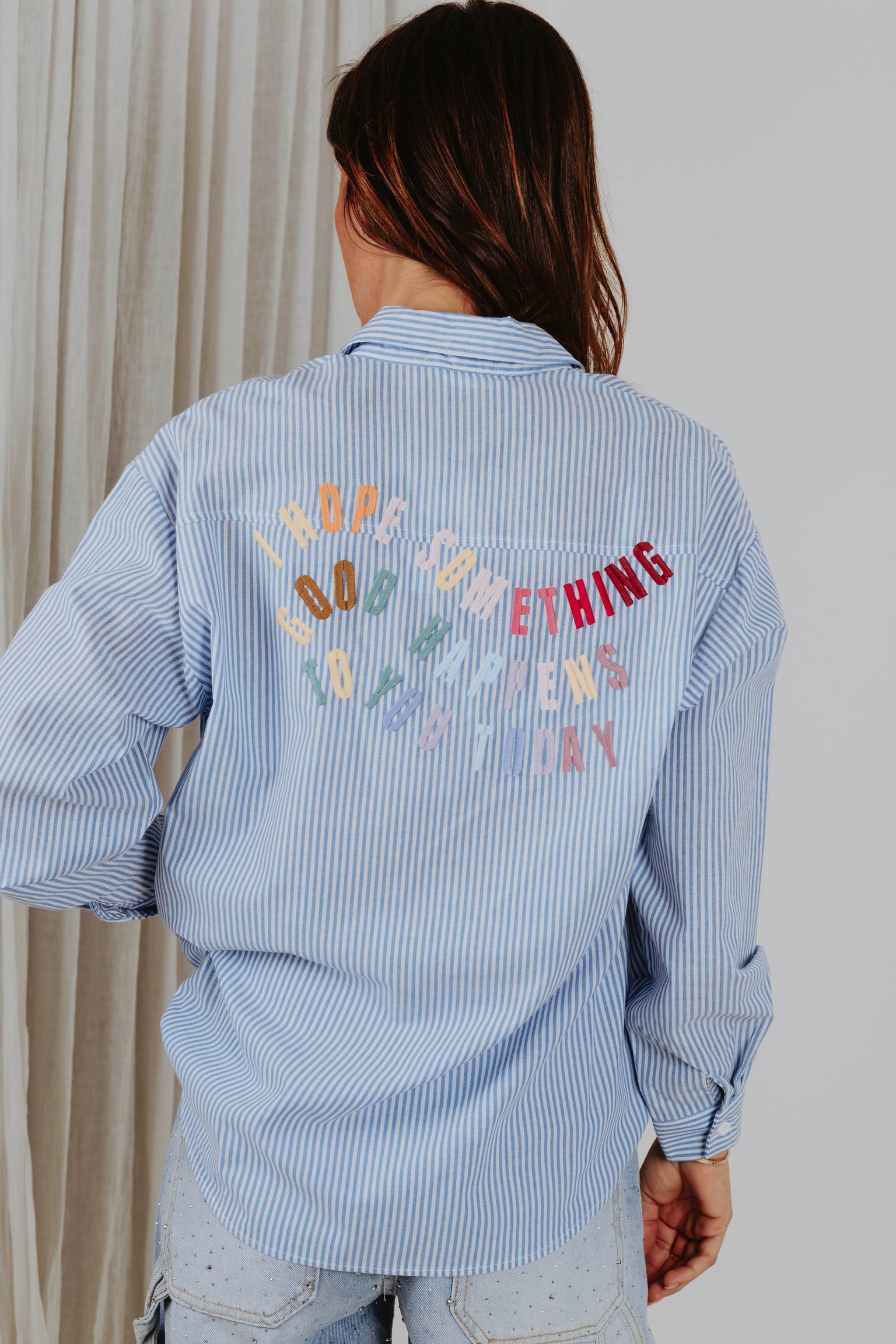 LOVE YOU MORE BLUE/WHITE STRIPED BLOUSE