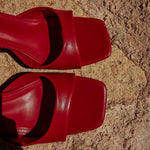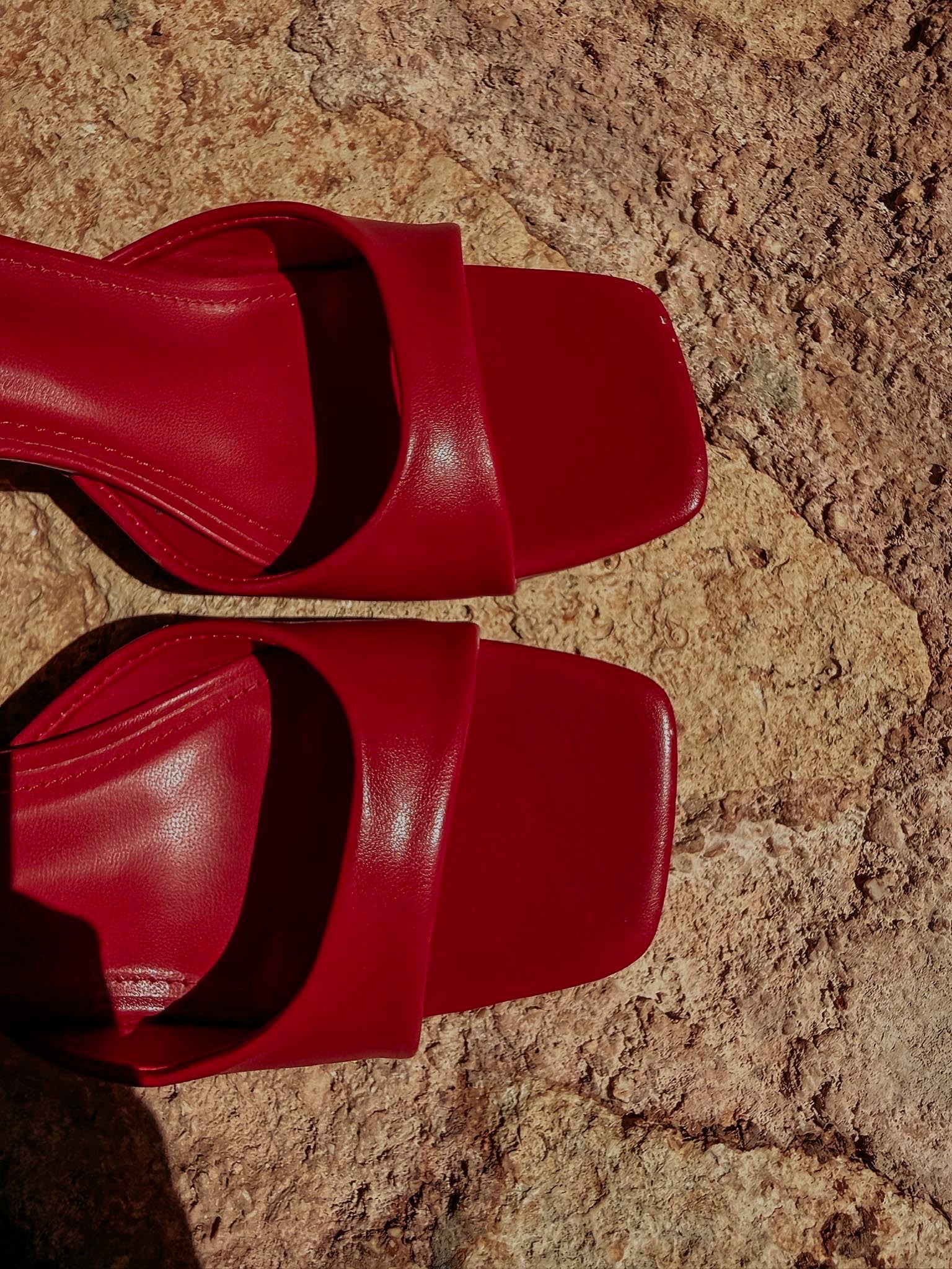 Stoere en opvallende hakken in een vurige rode kleur die elke zomerlook direct een boost geven. Het elegante ontwerp zorgt voor een speelse en zelfverzekerde touch, perfect voor zonnige dagen én zwoele avonden.