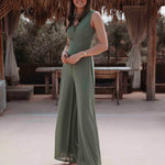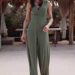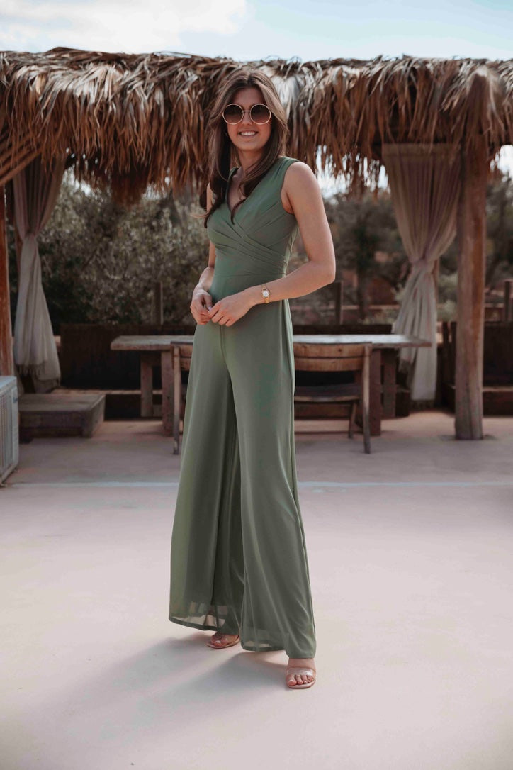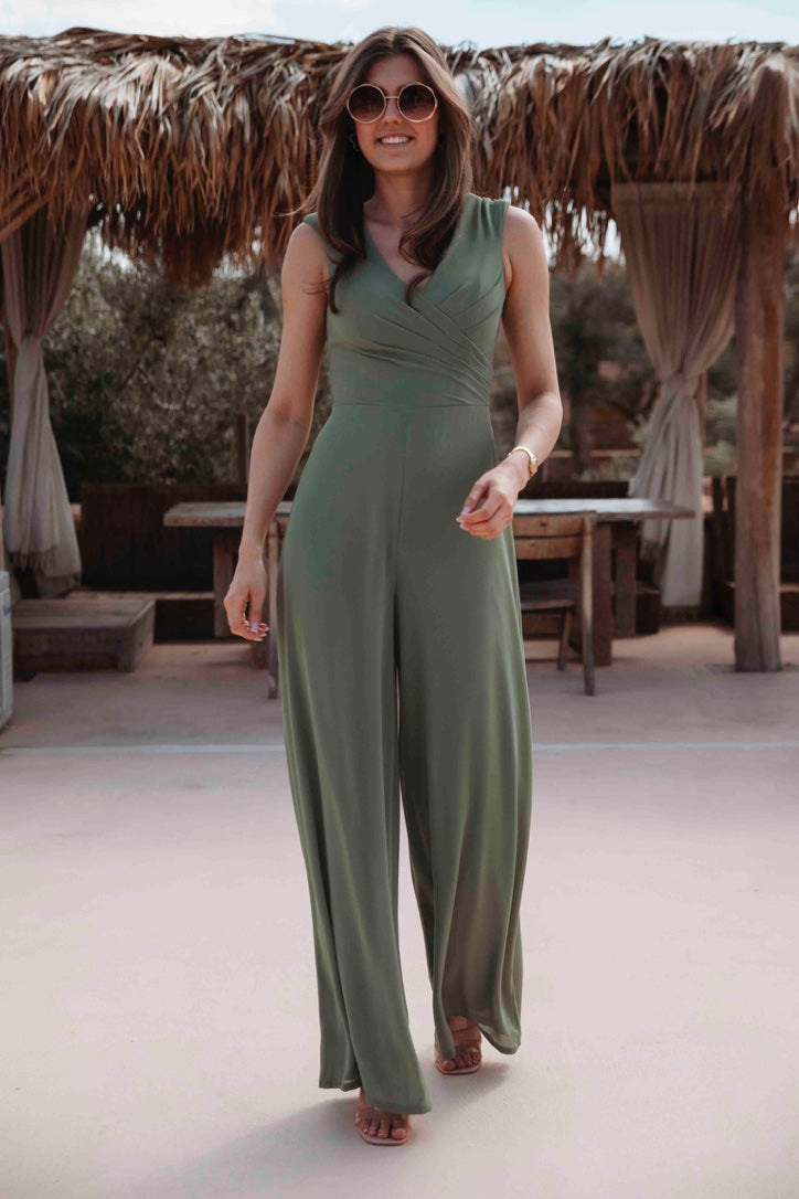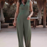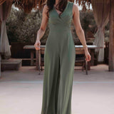 Deze simpele, elegante jumpsuit heeft subtiele plooitjes die het ontwerp een verfijnde uitstraling geven. Perfect voor een bruidsfeest of ander feest, het is een tijdloze en stijlvolle keuze die de hele avond moeiteloos draagbaar is.