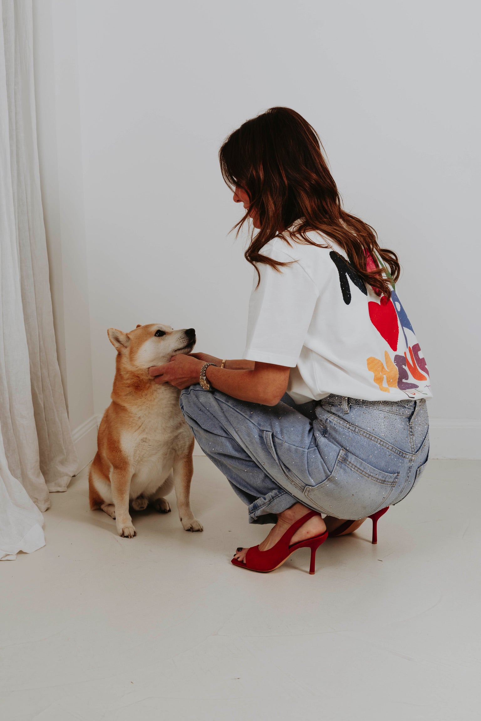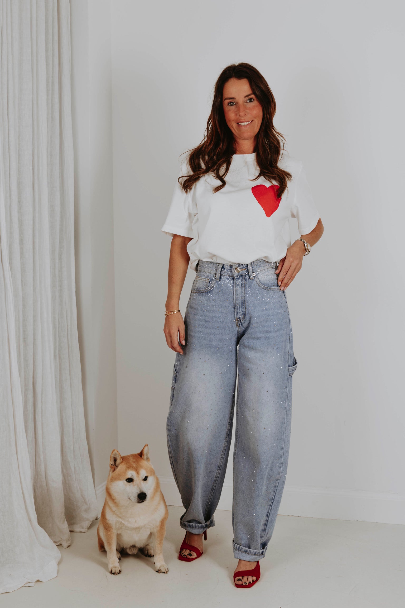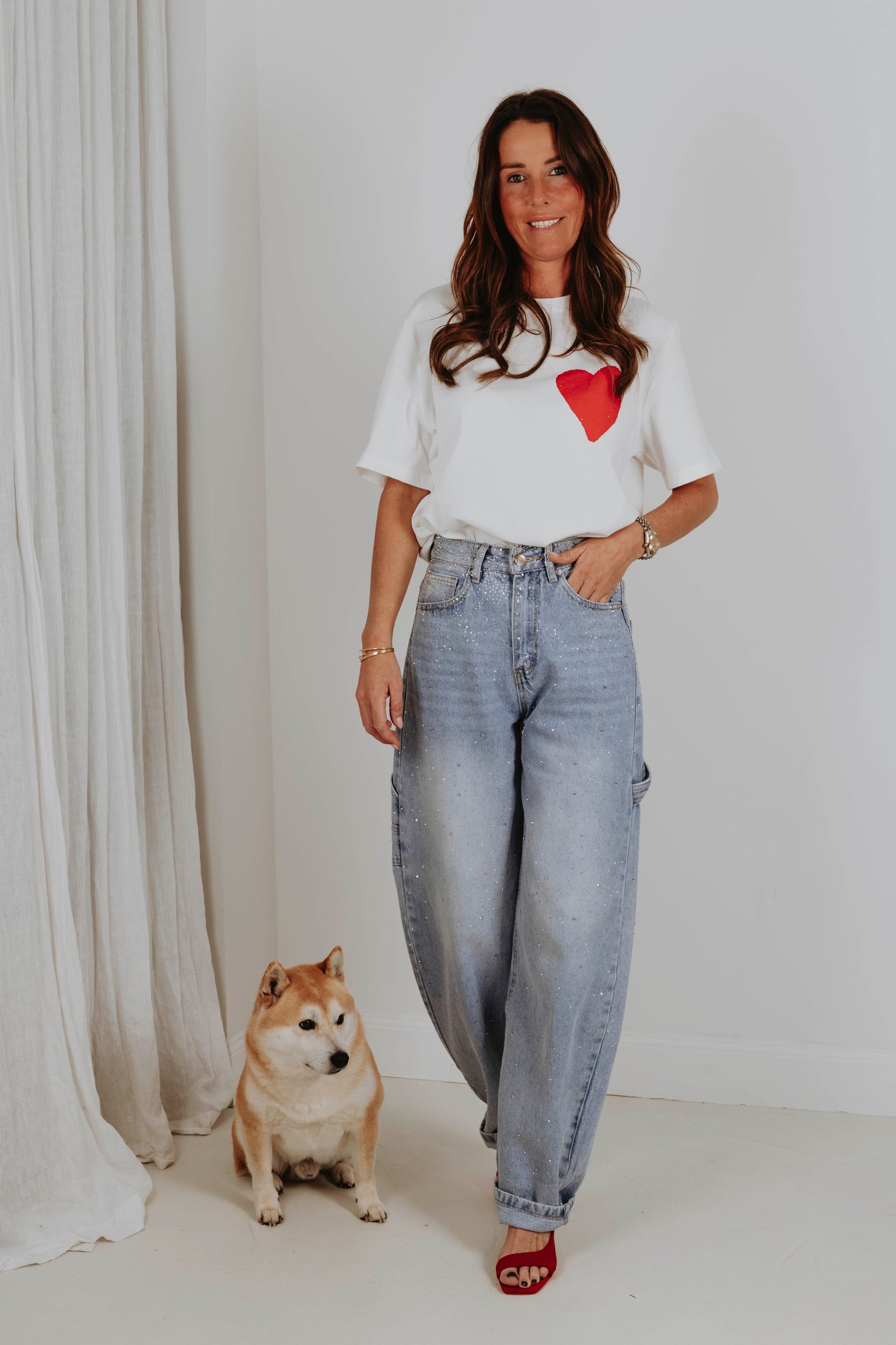Een clean witte basis met een rood hart op de borst krijgt aan de achterkant een krachtige boodschap in speelse, kleurrijke letters. Het contrast tussen rustig en expressief maakt dit item perfect voor wie liefde durft te laten zien. Een statement dat draait om het moment, precies zoals Valentijn bedoeld is.