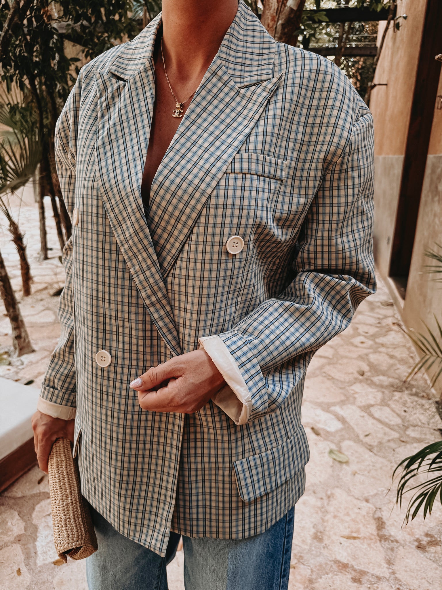 RESOLANA BEIGE CHECKERED BLAZER