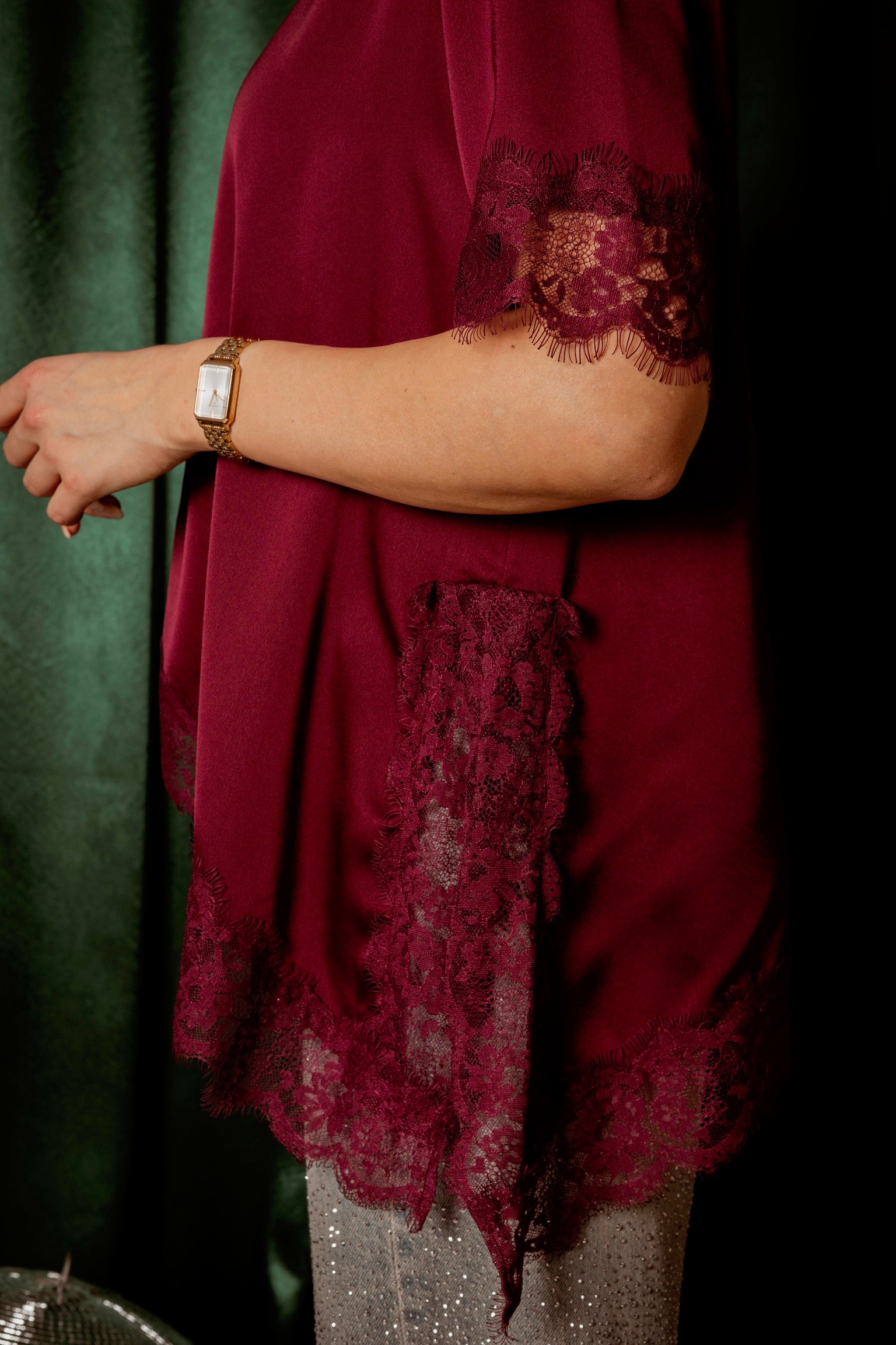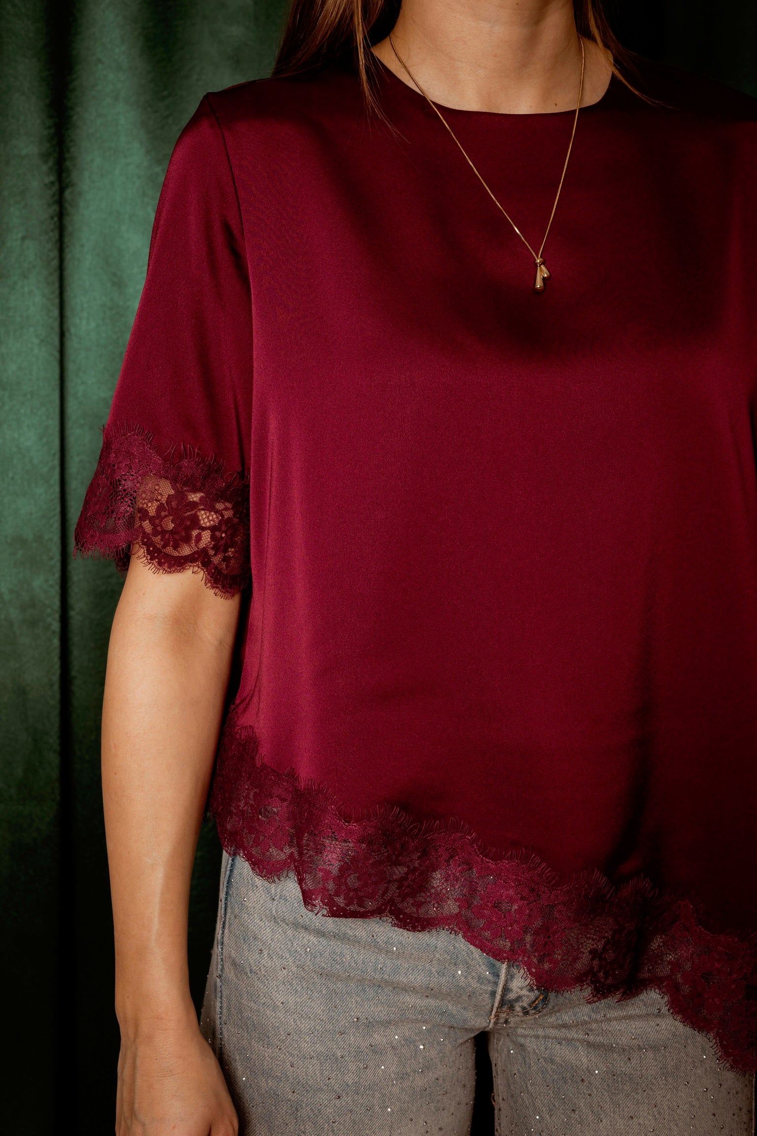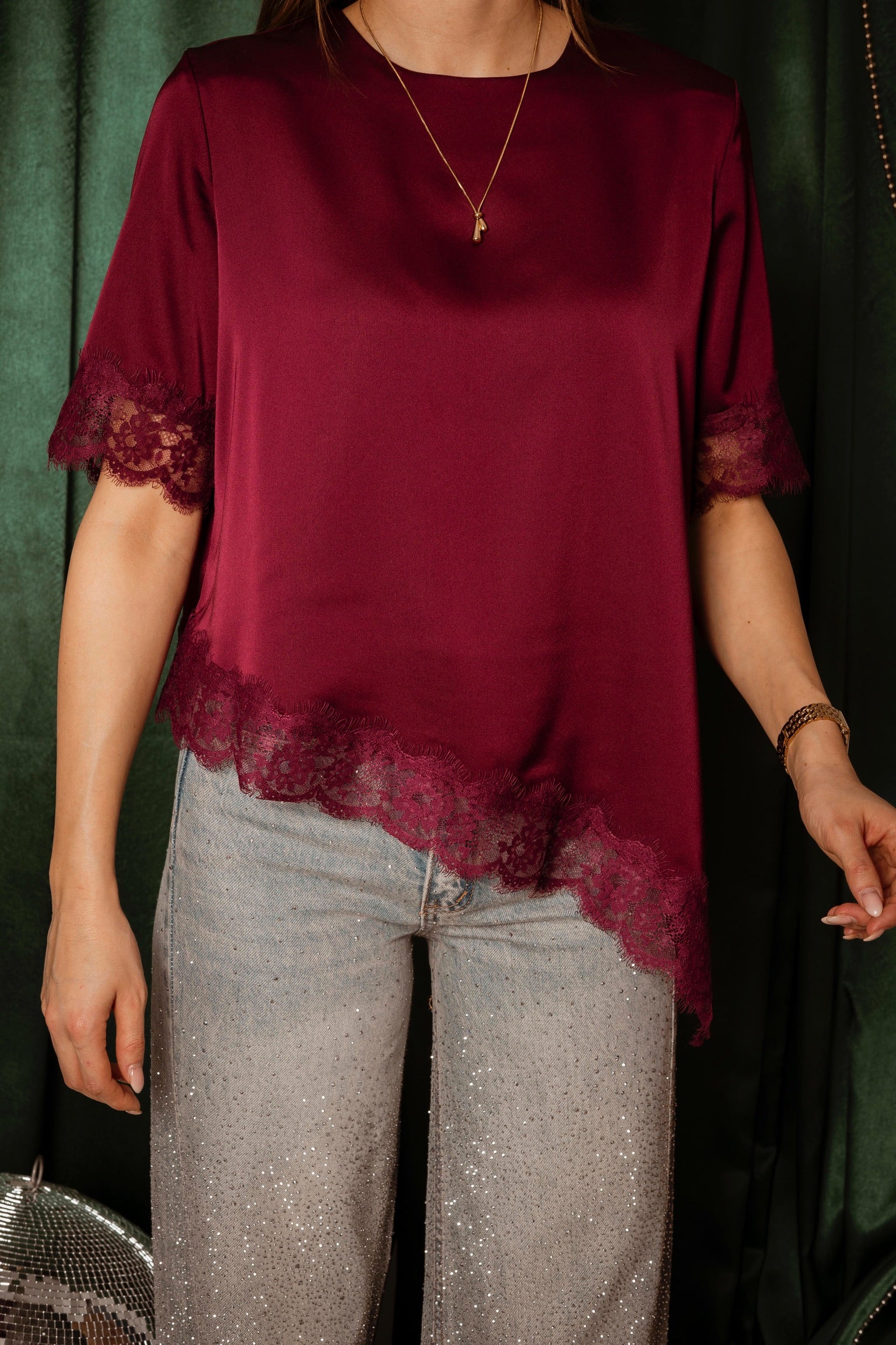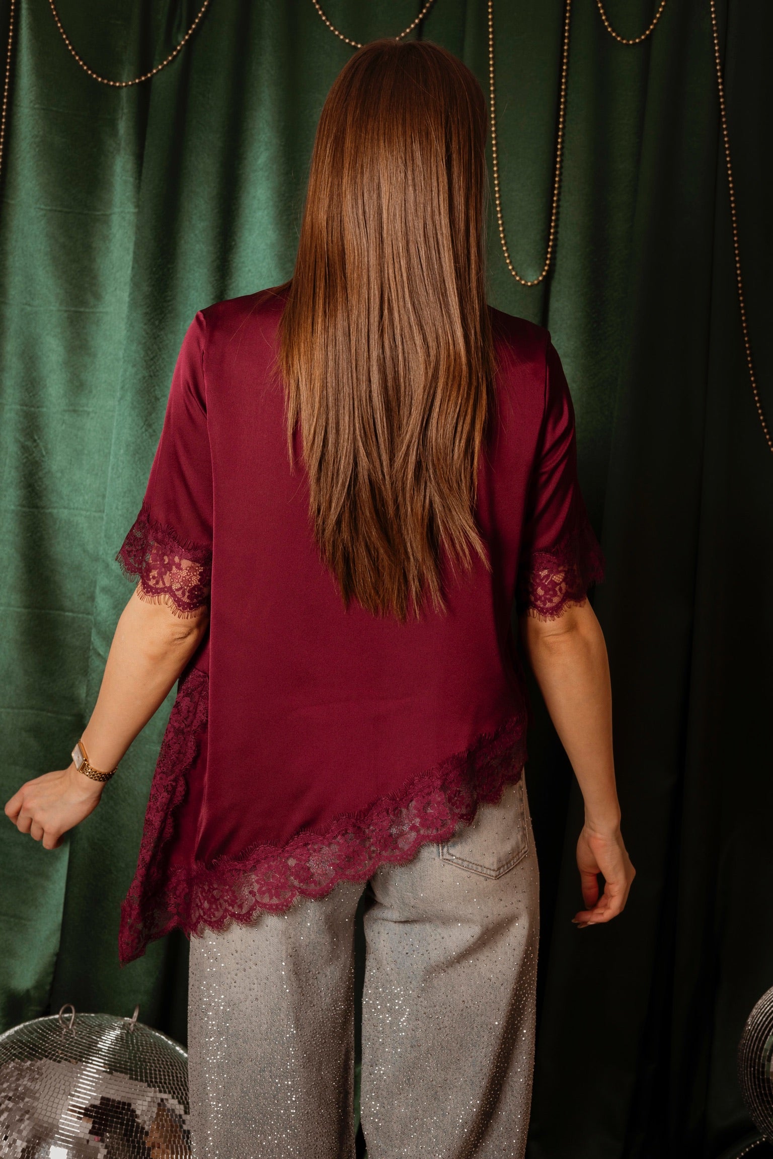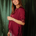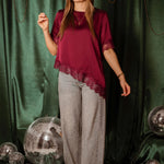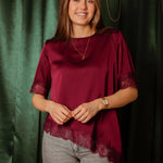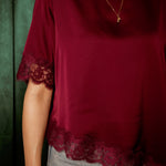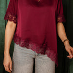 ROCKIN' AROUND BORDEAUX ASYMMETRIC SATIN LACE BLOUSE – Boetiek Pure Sense