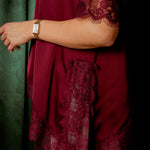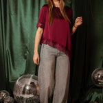 ROCKIN' AROUND BORDEAUX ASYMMETRIC SATIN LACE BLOUSE