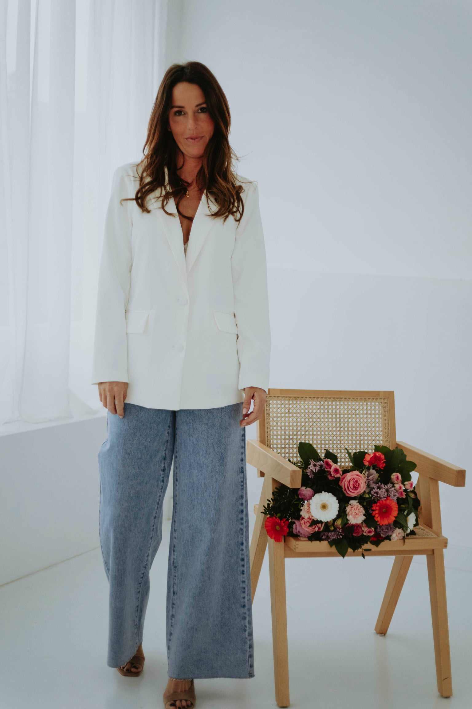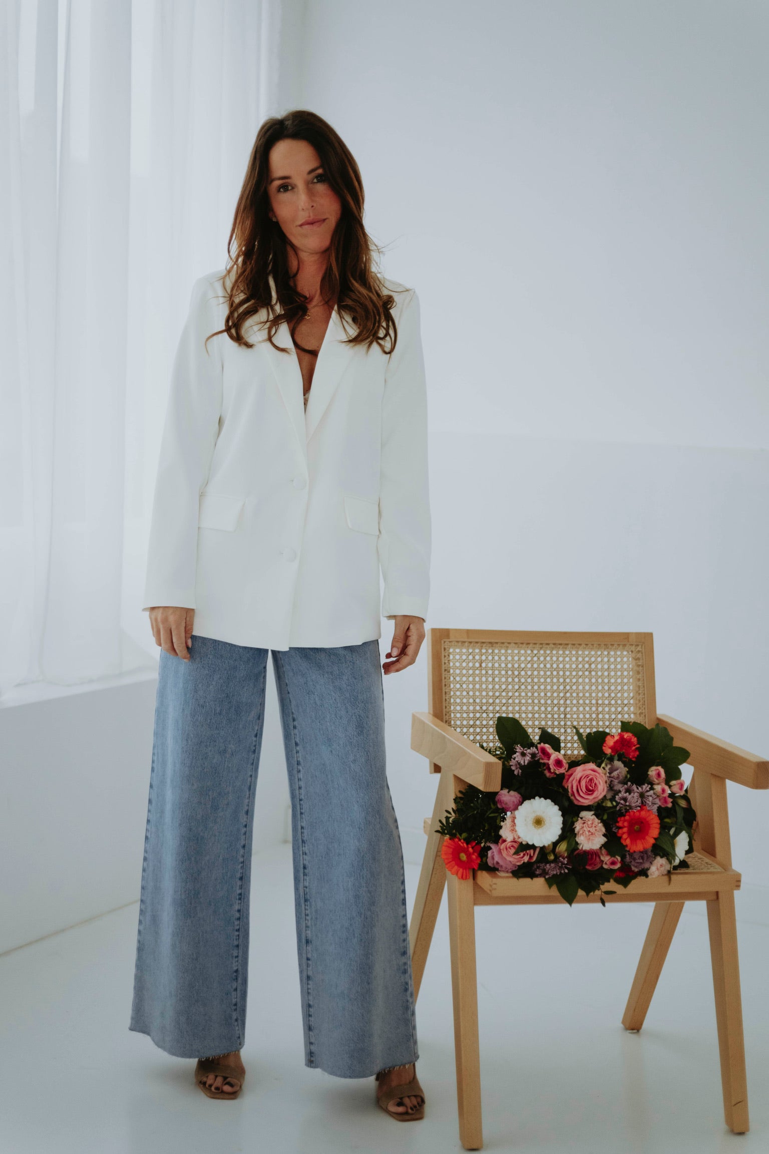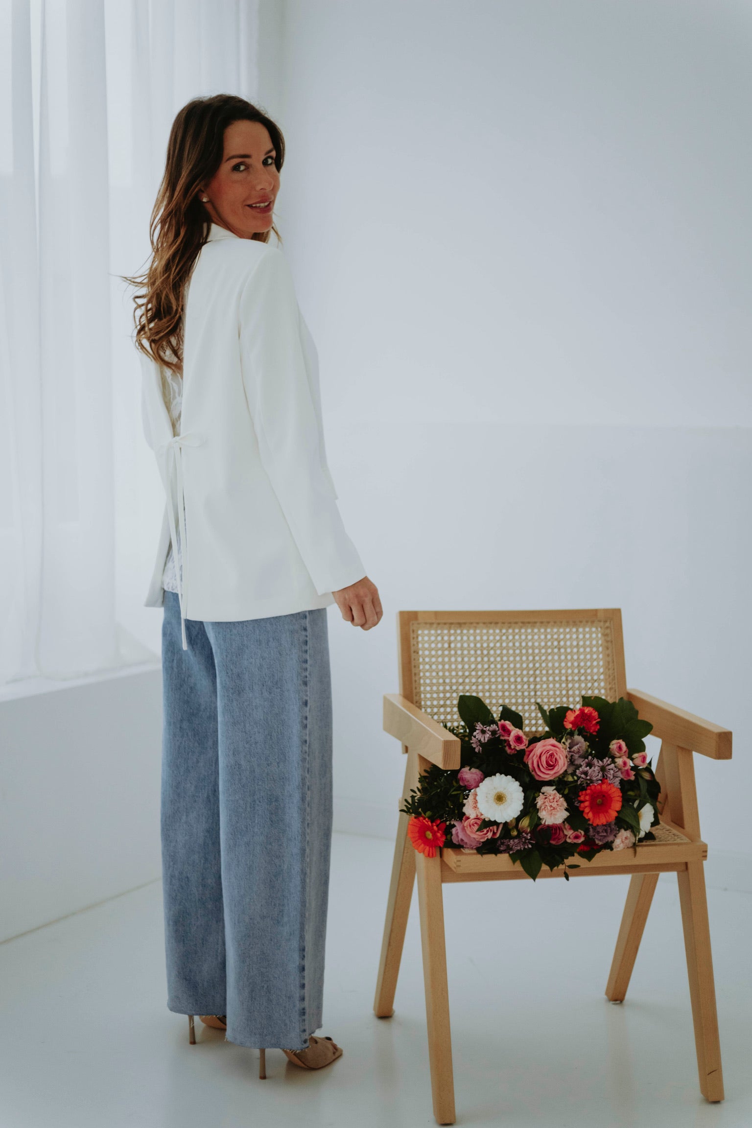 Dit luchtige jasje combineert een tijdloze vorm met een onverwachte, sierlijke twist achteraan. Een subtiel web van verfijnde details en een speels strikje maken het extra charmant. Ideaal om een zonnige dag nét dat beetje extra flair te geven.